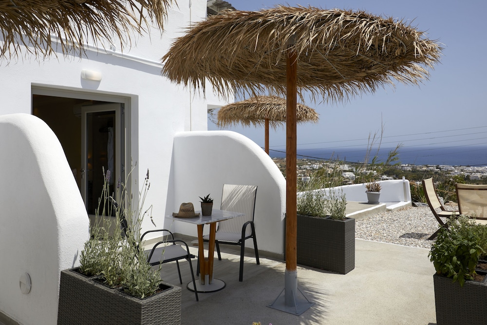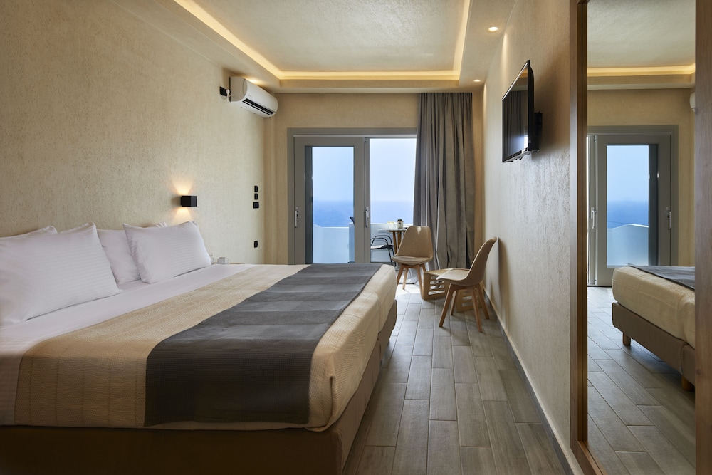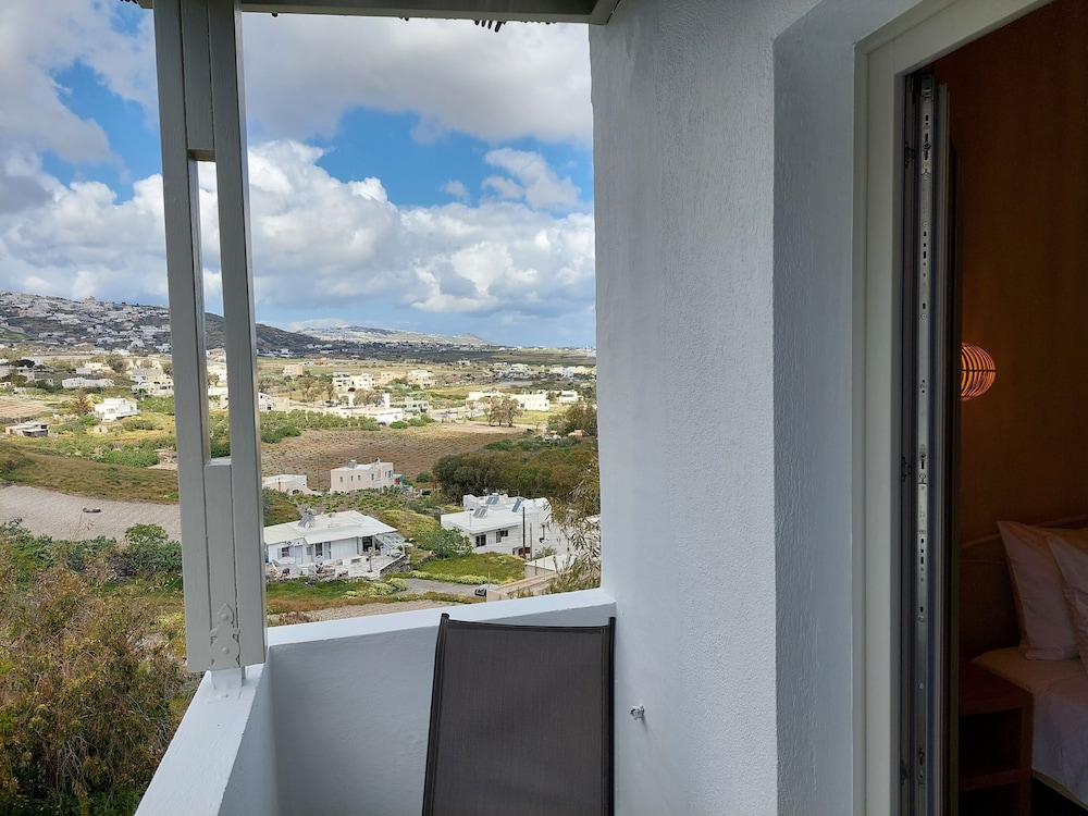 Very nice room just like home stay. People are very nice there and helped a lot with us. The hotel is located high on the mountain which requires a bit courage if u r driving there. The road on the island is tough anyway. However the location do give a great view as the picture shows. about 15 minutes drive to Fira, 40 miinutes to Oia. The overall condition of the hotel is worth the money.