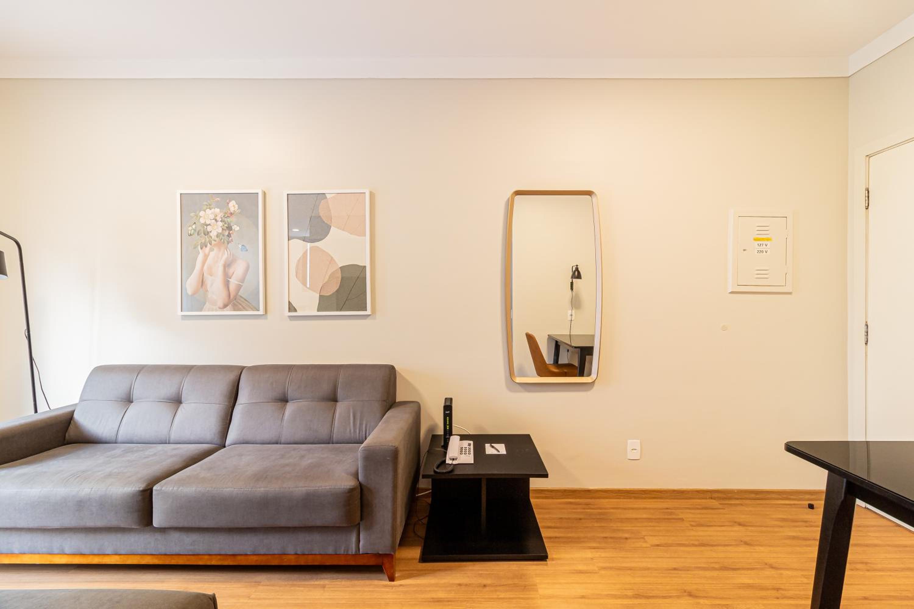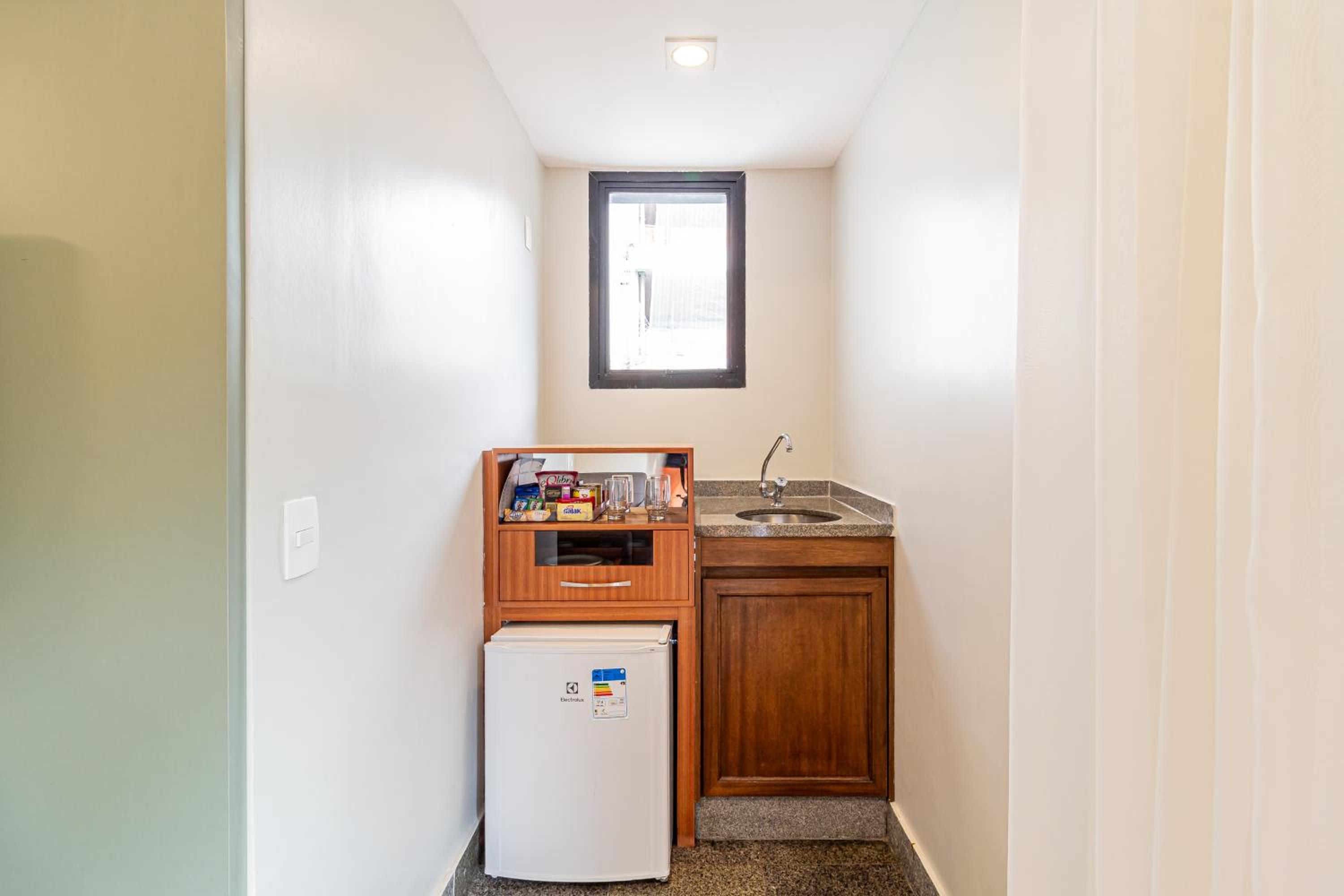 Não tem ar condicionado na sala do apartamento hotel. Existe uma grelha aberta na mini cozinha e o motor do ar condicionado está DENTRO da sala. SURREAL e insalubre.