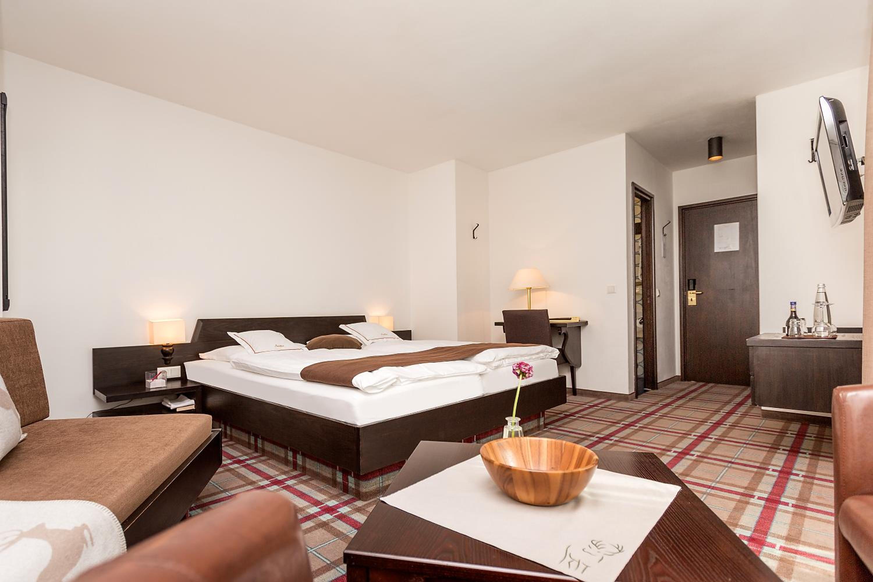 Experience the charm of Bavaria in every corner of the Alpenhof hotel. The rooms are tastefully decorated in traditional Bavarian style, offering a cozy and authentic atmosphere for your stay.