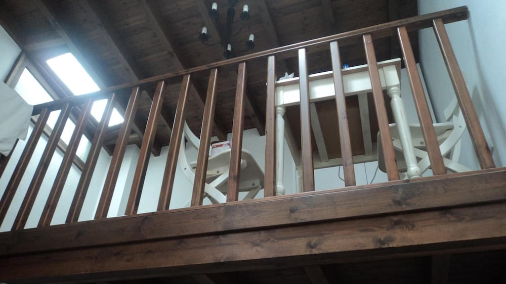 This is more like apartments than hotel rooms - our one had an upstairs where there was a small kitchen unit, tables and a small bed. The downstairs had the bathroom, a small wardrobe and the main bed.