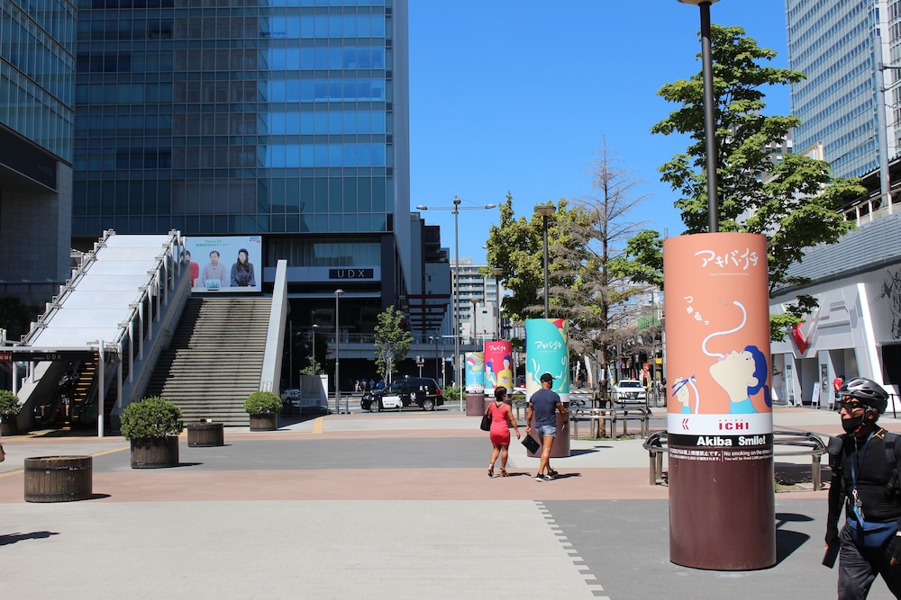 Close to the center of Akihabara, has a nice bath in the terrace and even free milk/ice cream!!
