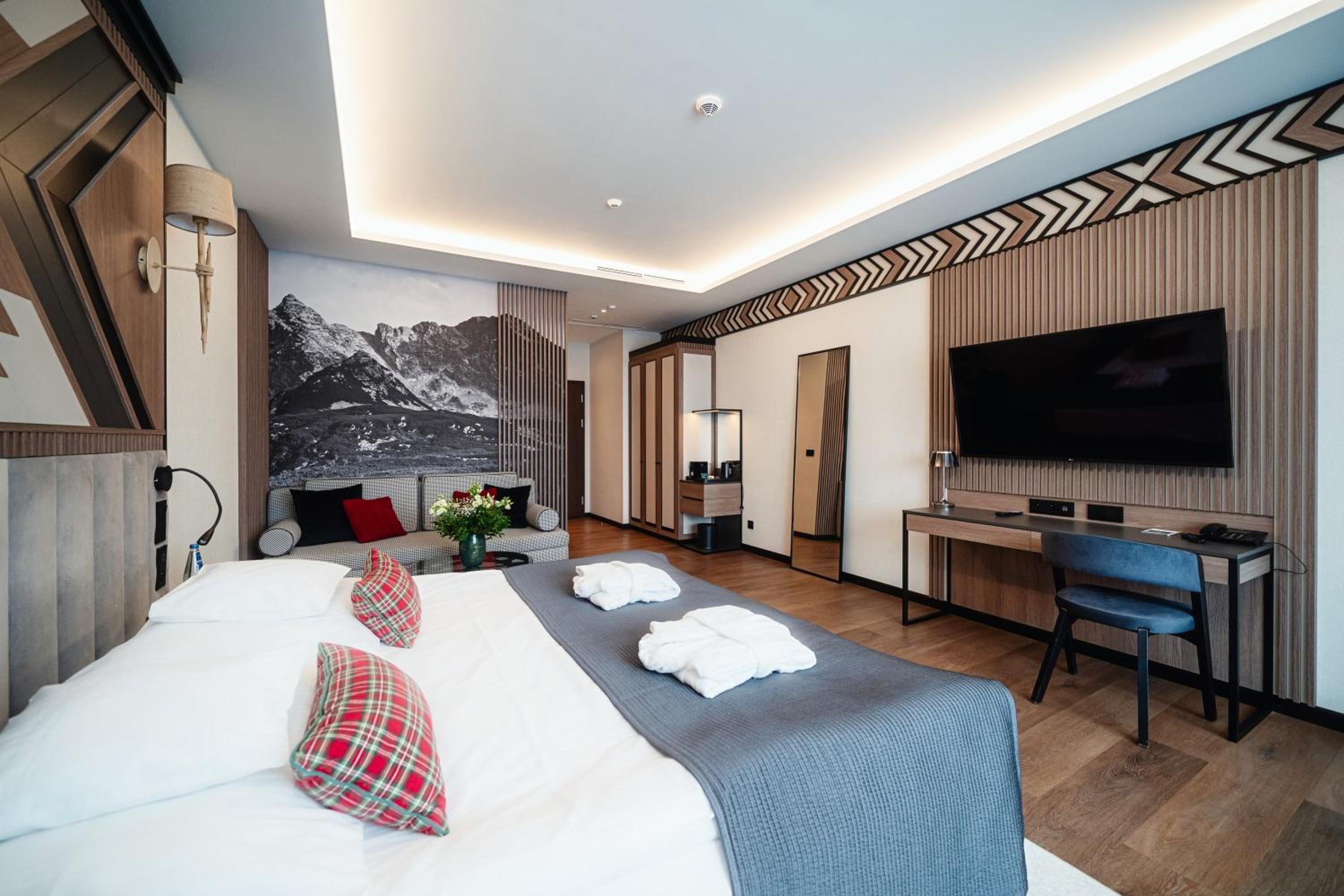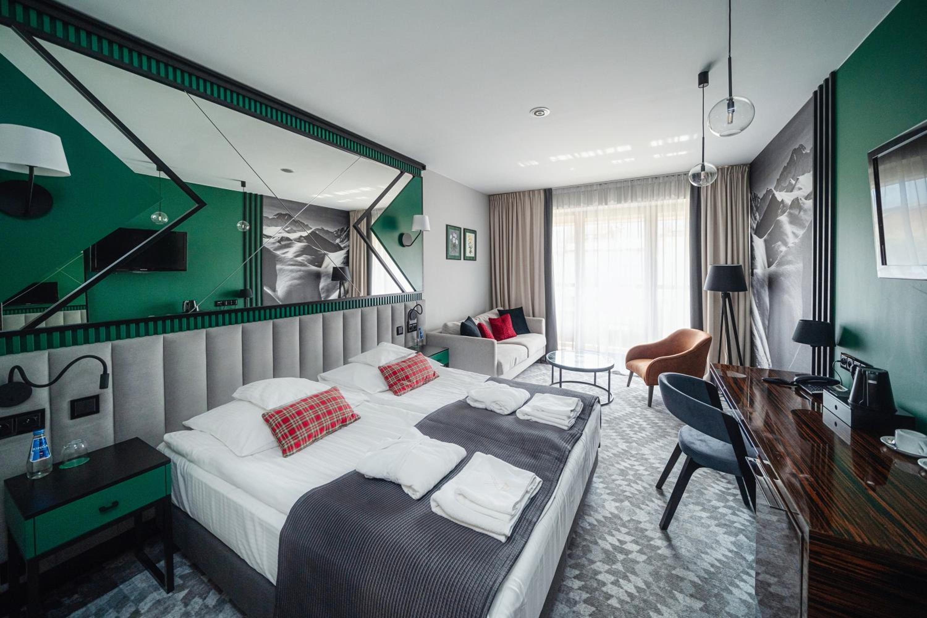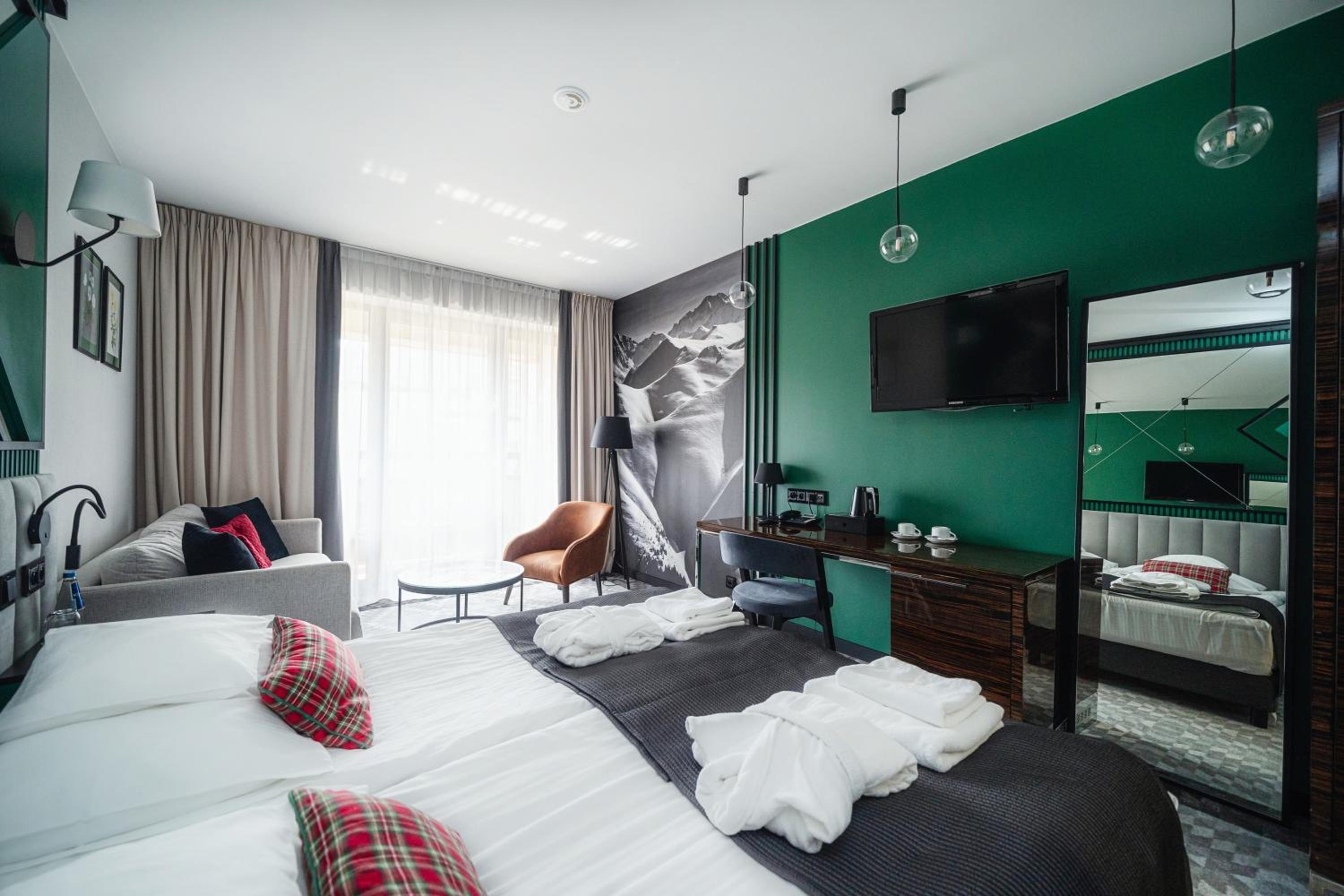 Experience the epitome of luxury at Hotel Rysy, just 200 metres from Krupówki Street. Enjoy spacious rooms with free Wi-Fi and digital TV, modern decor with wooden furniture, and sheep wool carpets.