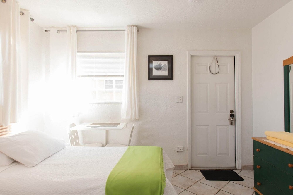 Staff was quick to respond to my questions in regards to parking, I was able to check in earlier than normal time. Room was clean, smelled fresh, very simple, bed was comfortable and fresh. A microwave, small dorm room frigerator with freezer, a small coffee pot. Very close to the beach, and away from all the noise of the louder parts of the Broadwalk.