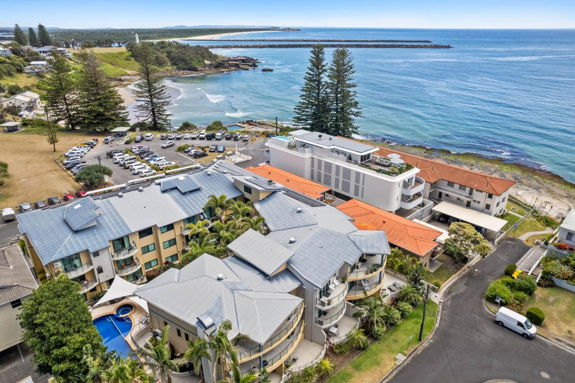 Situated overlooking Yamba Main Beach, The Cove Yamba offers modern apartments with stunning views and essential amenities for a comfortable stay.