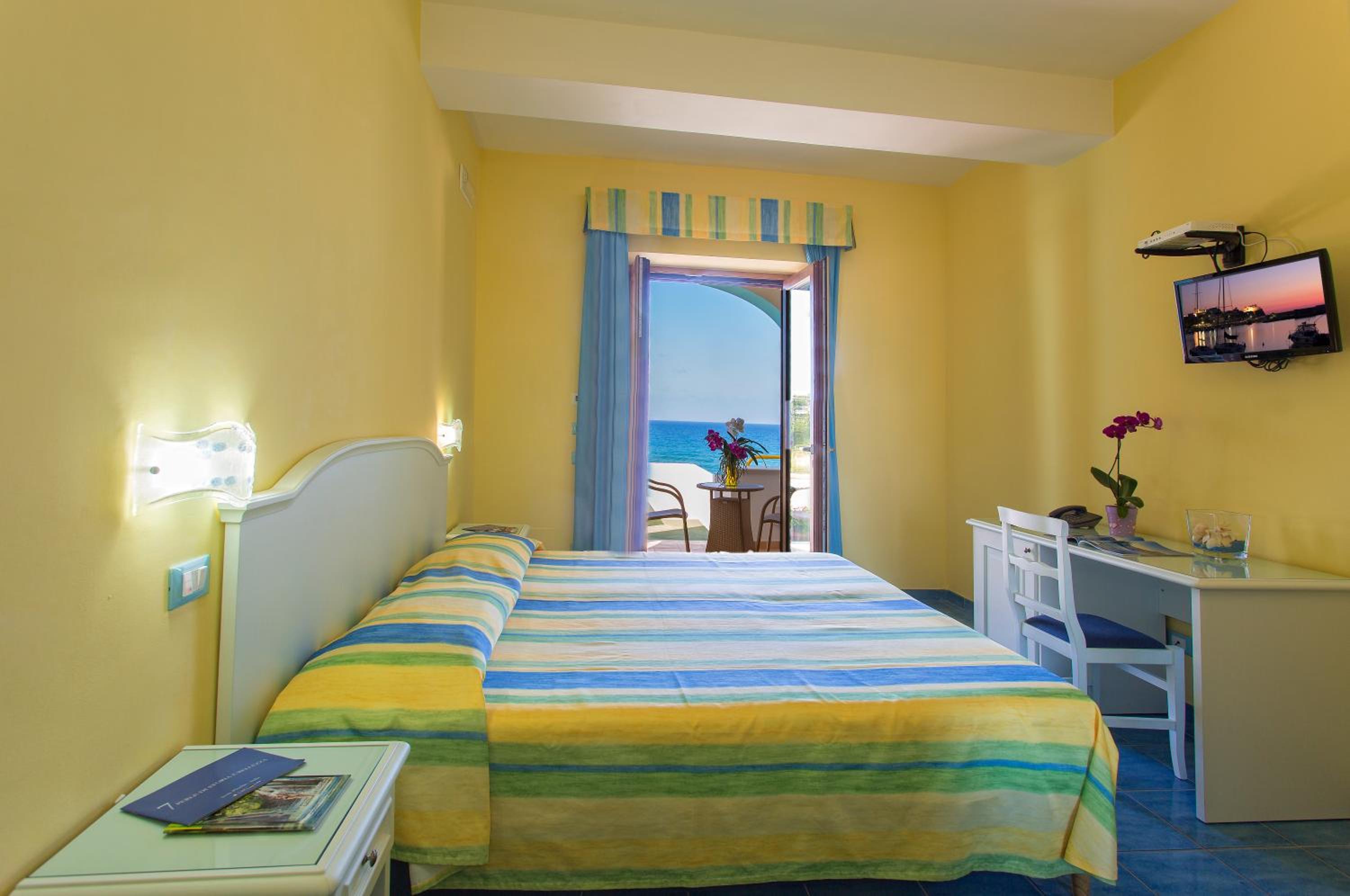 Experience the charm of Mediterranean-style rooms at Hotel Cava Dell'Isola, each uniquely decorated and equipped with modern amenities like air conditioning and satellite TV. Some rooms even boast garden-view patios or sea-view balconies.
