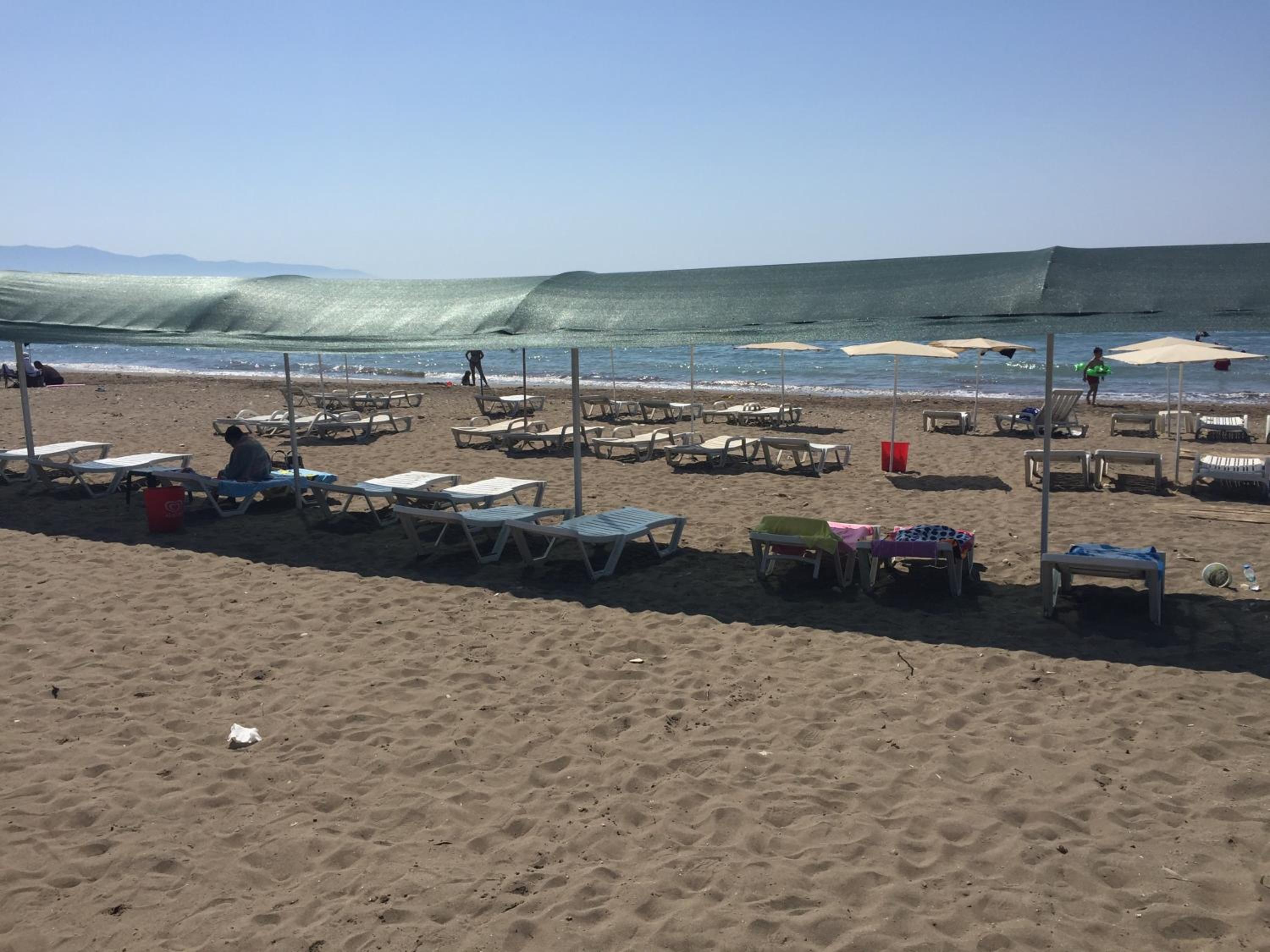 Пляж общественный через дорогу, но не очень чистый, шезлонги платные от рядом стоящих кафе.
