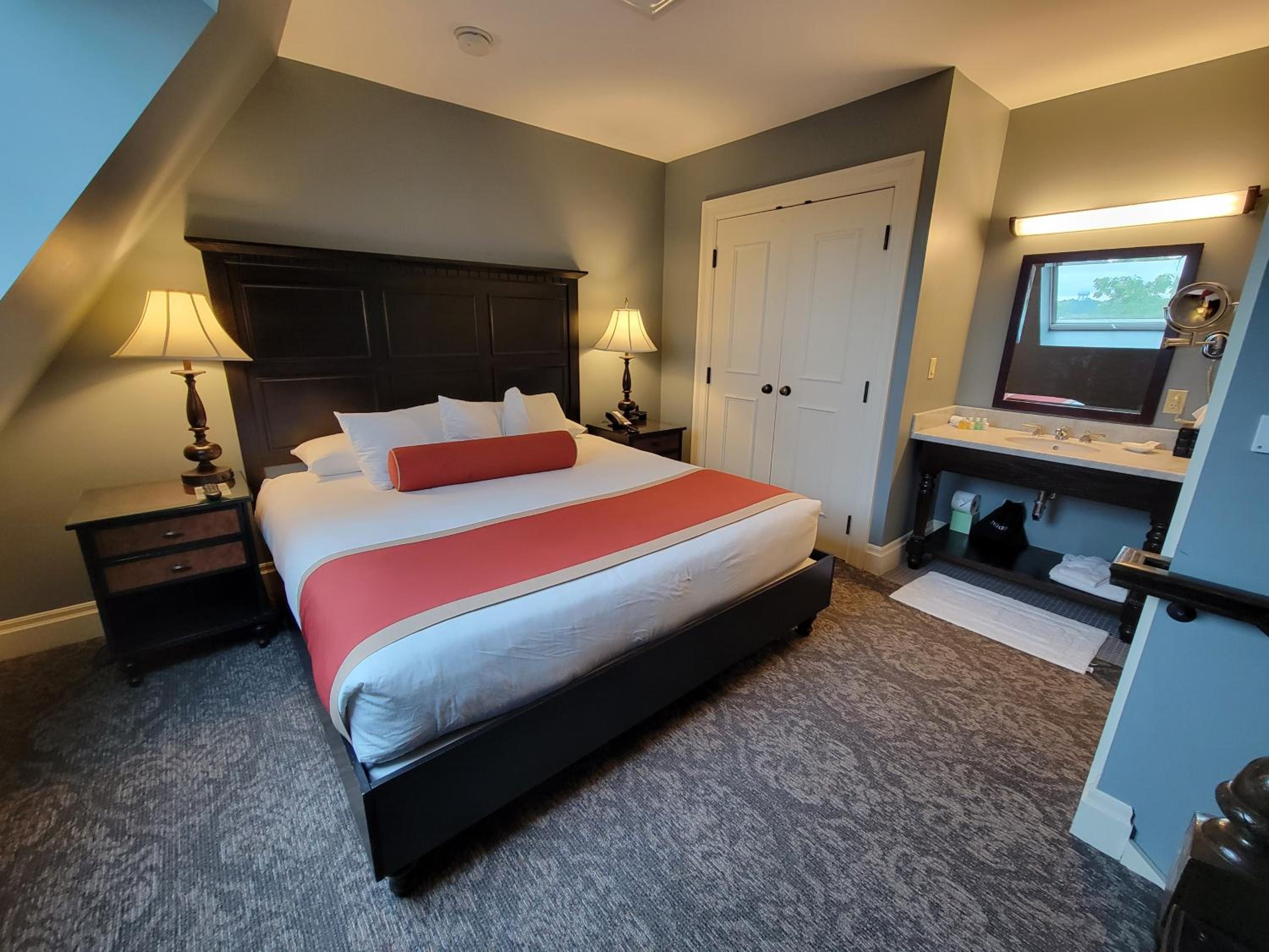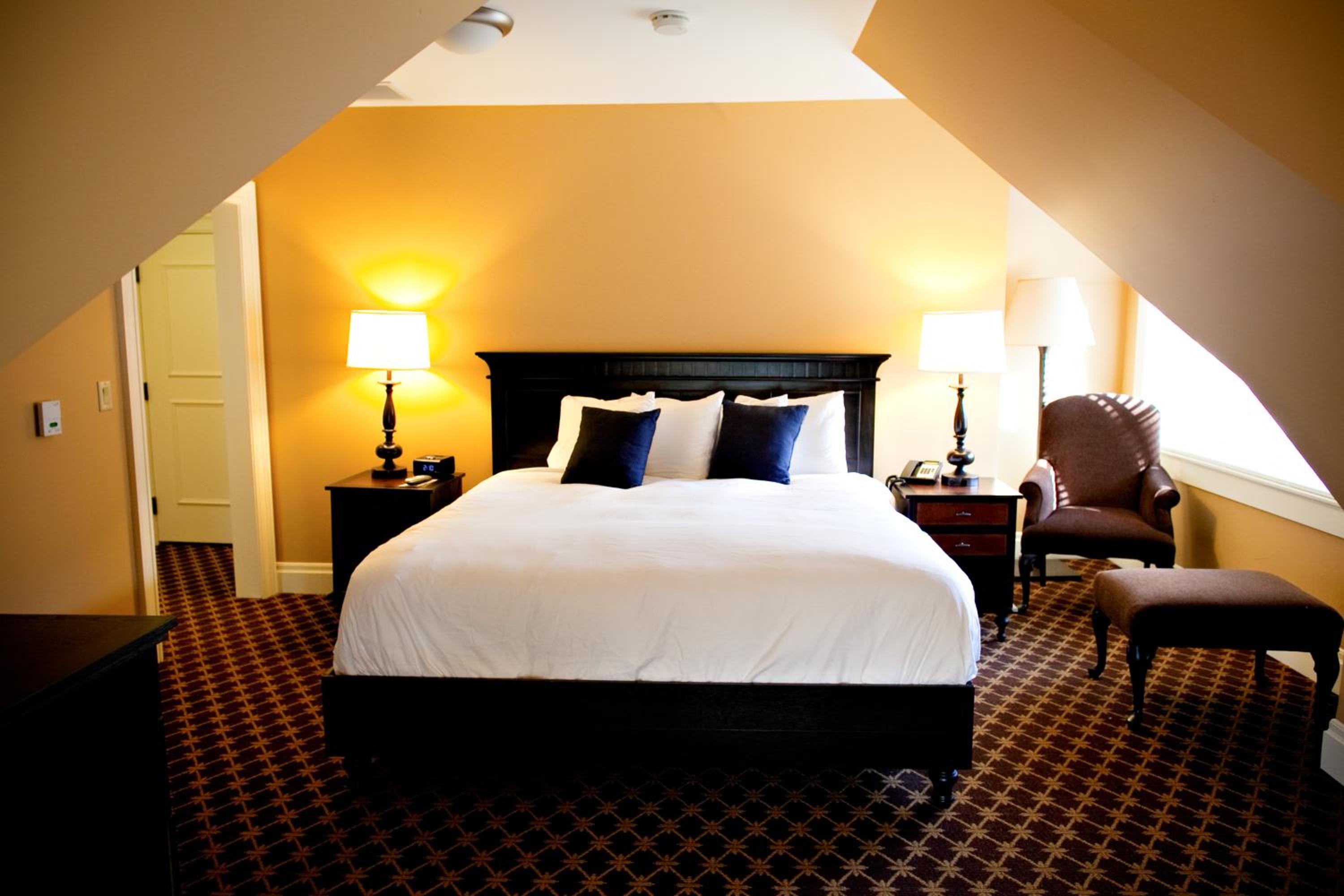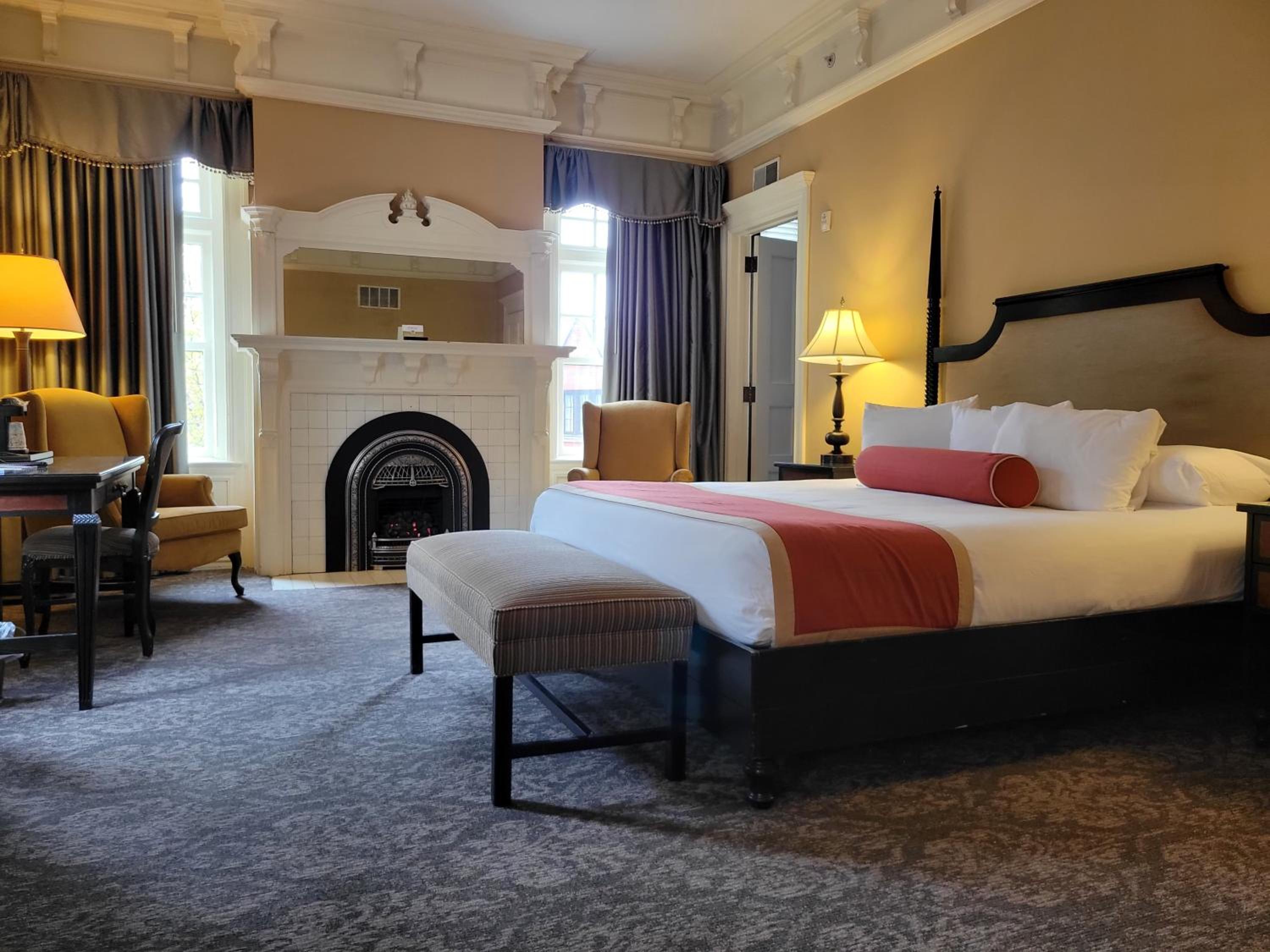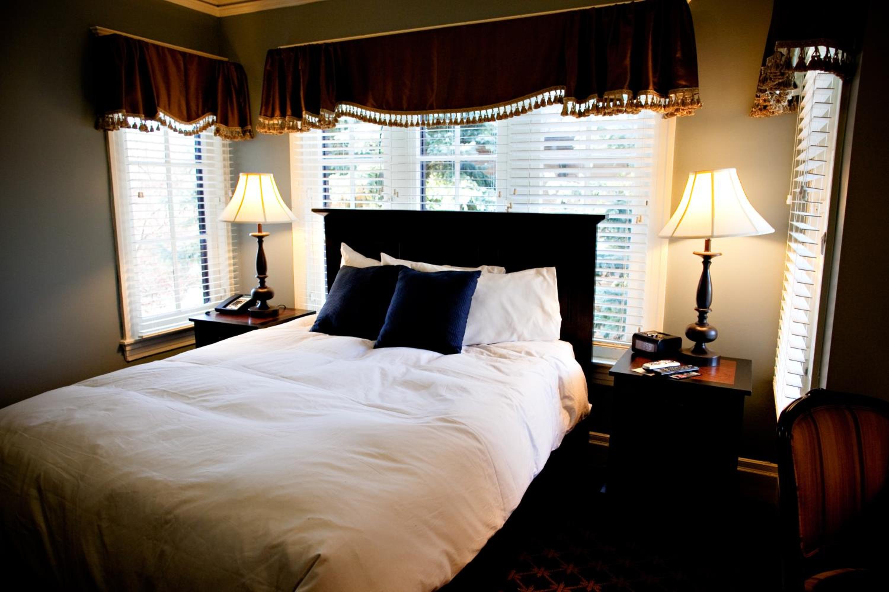 Indulge in the elegant guest rooms and suites at Mansions on Fifth, each equipped with a flat-screen TV, comfortable bedding, and modern amenities for a relaxing stay.