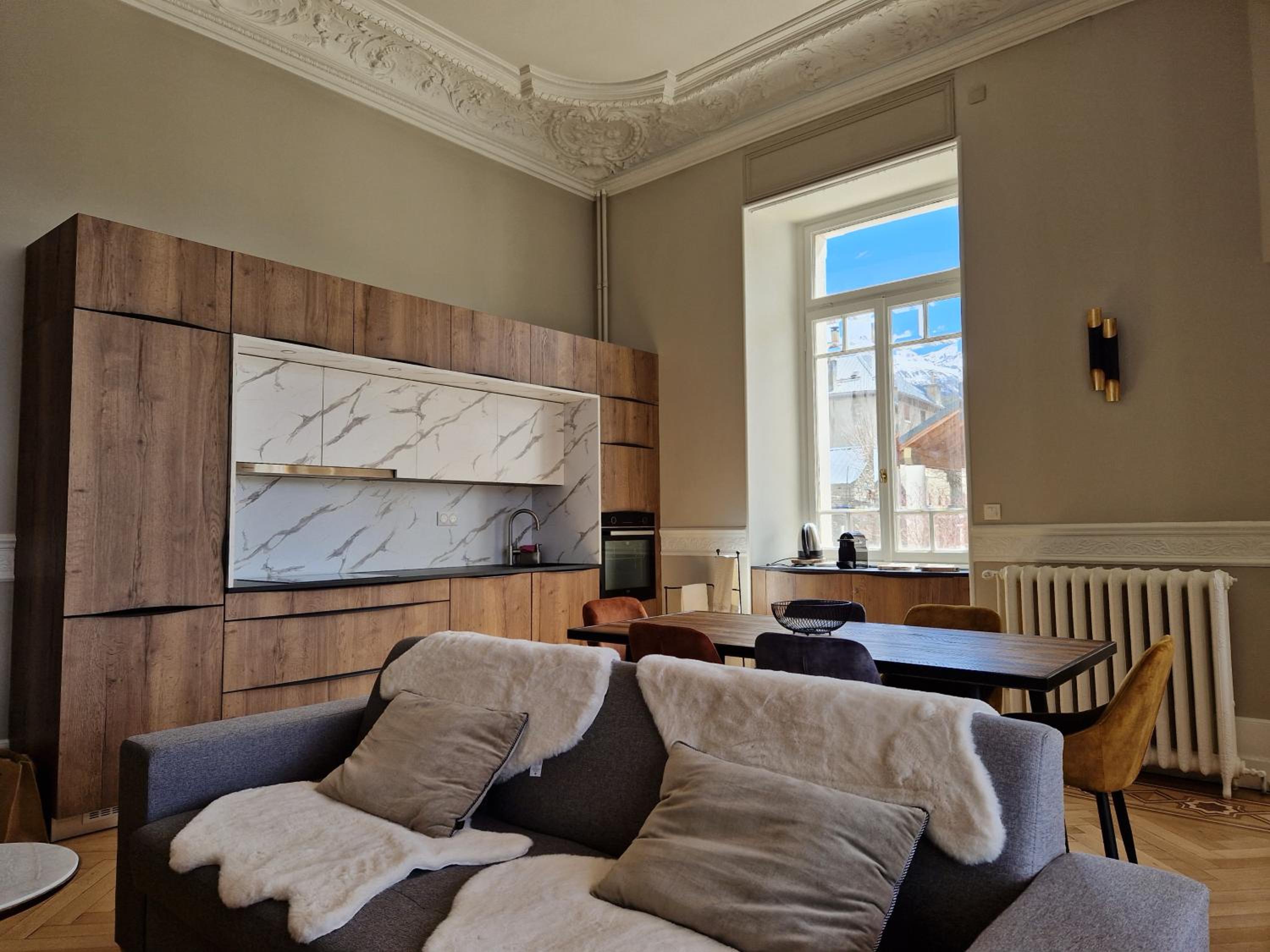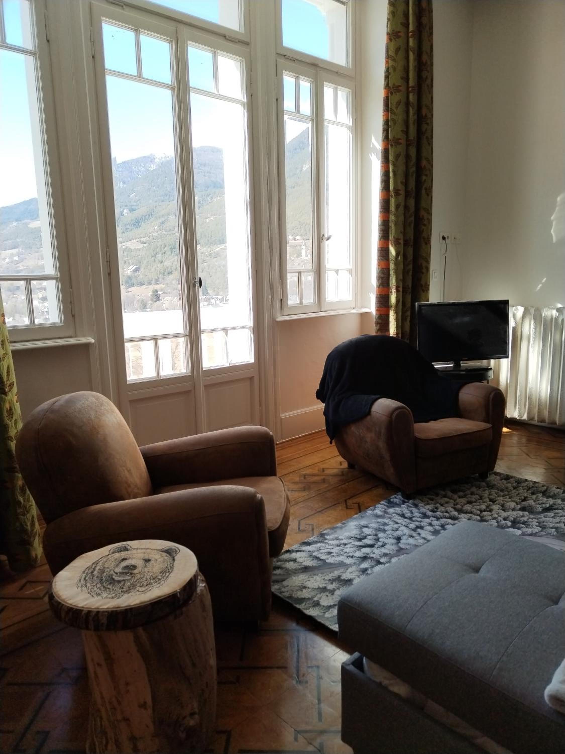 les 4 étages, etre sous les toits, n avoir que des velux et donc aucune vue, l appartement est très sombre, la moquette fait vieille et sale. les sommiers sont insalubres sans parler de l'état du canapé lit et des chaises vraiment très très sale. il n y a qu un filet d eau pour se laver, le petit déjeuner ne peut etre recuperé qu a partir de 9h ce qui est tard quand on va skier.