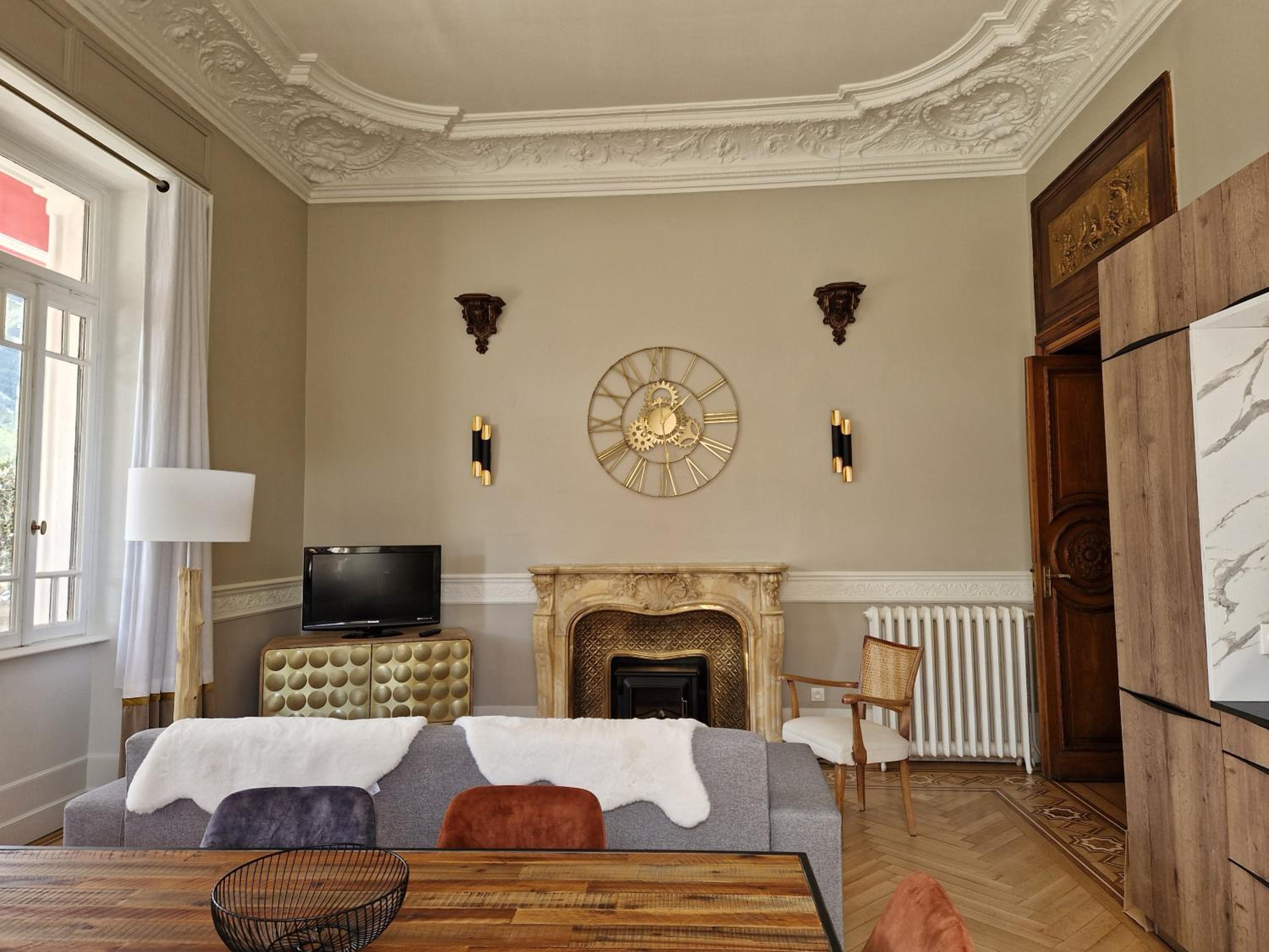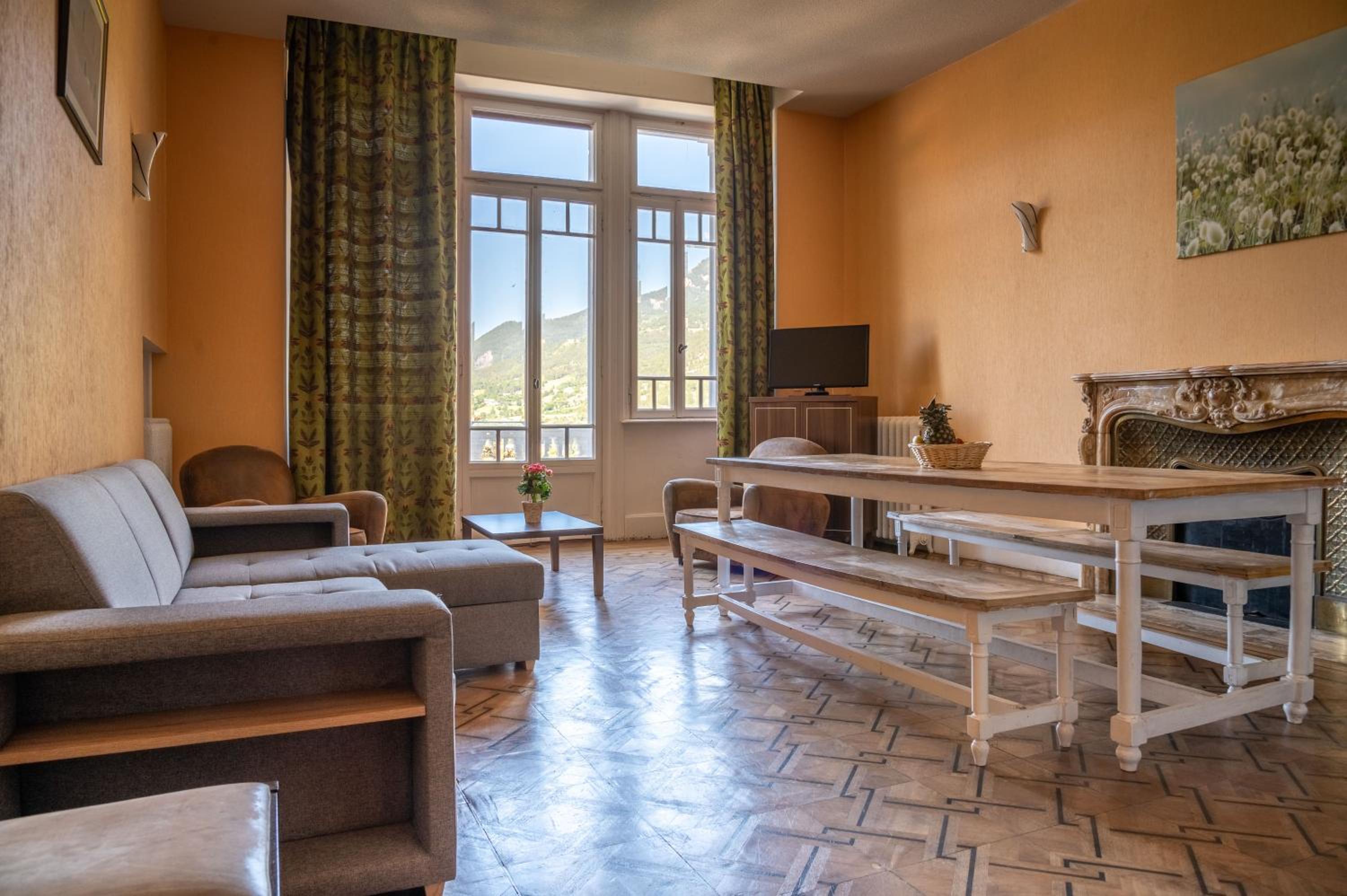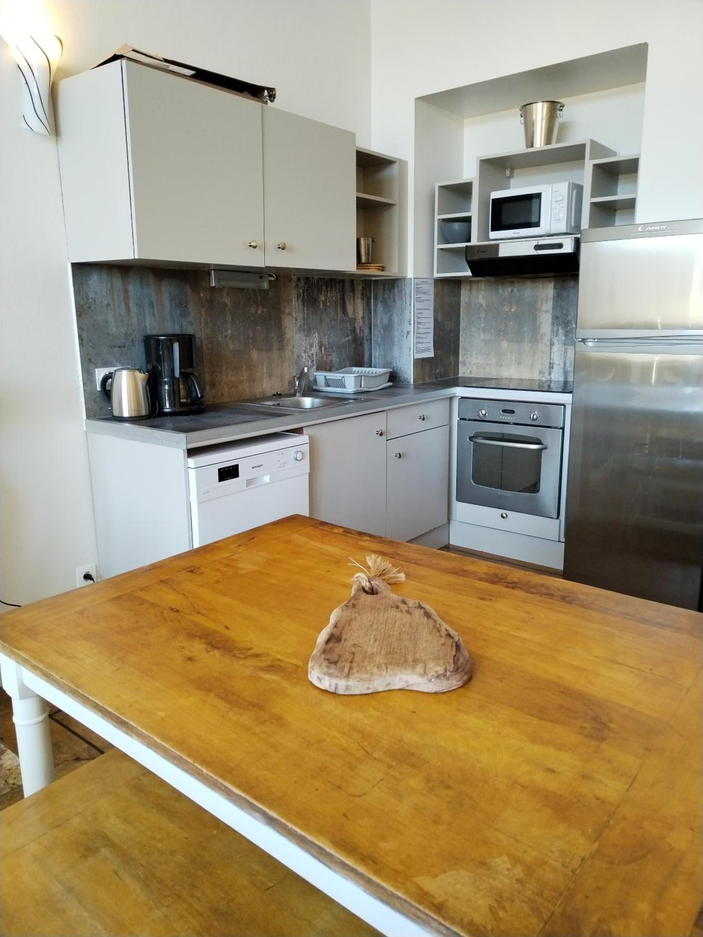 l aspect exterieur du chateau,l appartement etait assez grand pour nous six, la cuisine equipée meme si le frigo etait un peu cassé