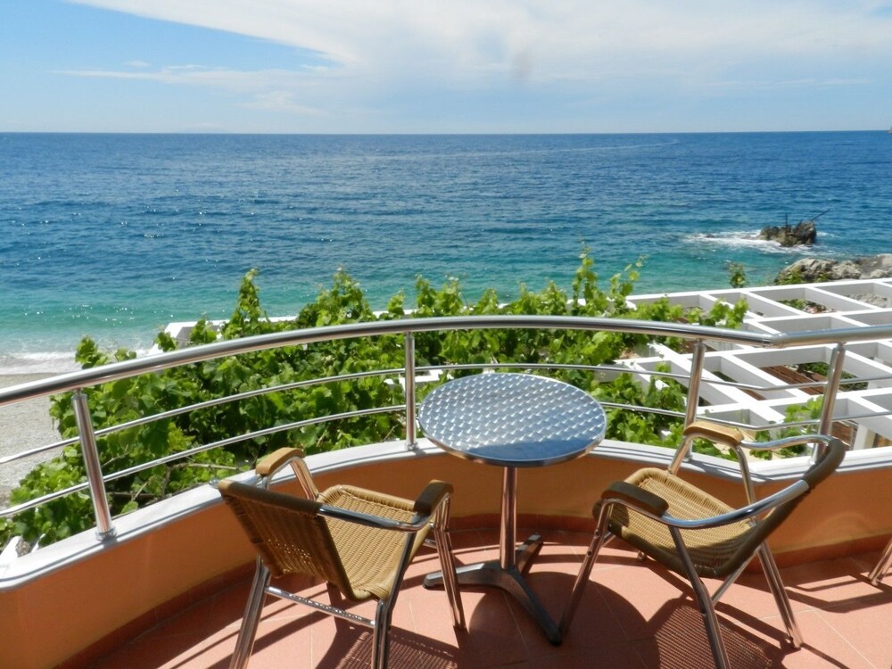 this place is fantastic., it is more like a small hotel than a b & b . the building was new, clean and modern, what you see in the pictures is exactly what you get. it is right on the beach (no road between even) and you can walk straight off the property onto the beach. rooms were very clean, aircon good, with fridge, towels, etc. balconies not too big, but big enough for a couple to sit on the tables and chairs provided and relax over a glass of wine. internet worked well. the owners were very helpful, we were the only people staying at the hotel who had breakfast included in our price so he offered to deliver it to our room in the morning. when i saw him in the morning he then offered to serve it downstairs, practically on the beach as our balcony was in full sun at the time. what a way to start the day, just beautiful. tomatoes straight from the garden with our own personal table with a lovely view of the ocean. they also helped us with the bus tickets for our onward traveln (not an easy thing to work out in albania) and the owner was even up at 6am to make sure that the bus picked us up and we were away safely. albanian hospitality at its best and the accommodation was in a lovely spot, where the beach is clean and a little quieter than up the other end of himare, however there are still shops and restaurants nearby so you don;t have to venture far for food. highly recommend this hotel. from a well seasoned traveller.