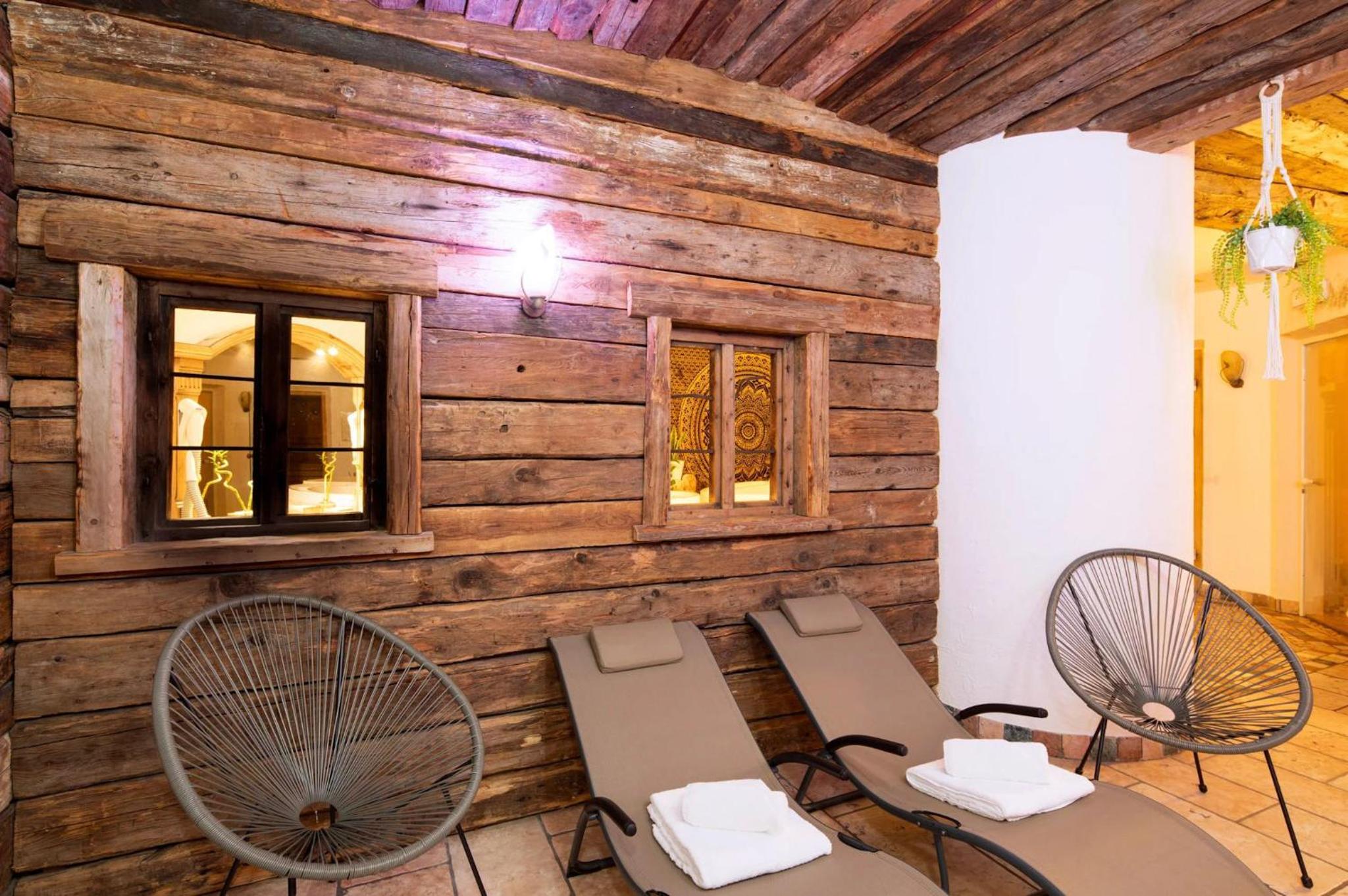 Unwind in the hotel's wellness center with a gym, perfect for relaxation after a day of skiing or hiking. Enjoy the panoramic views from the rooms, each featuring classic Alpine decor and modern amenities.
