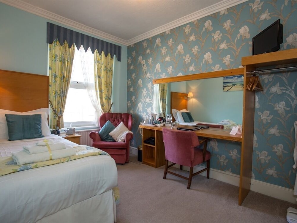 I had a three night stay at The Briars in a single room (the middle window on the 1st floor) with a view over the promenade to the bay and pier. There is an en-suite toilet/wash basin and you have the exclusive use of a stand-alone shower-room which is just round the corner on the landing, which was very good indeed. The room was spotless, very comfortable and the bed was great - I slept like a log! A nice touch was a bottle of water in the room and this was refillable from the water cooler in the hall - ice cold!