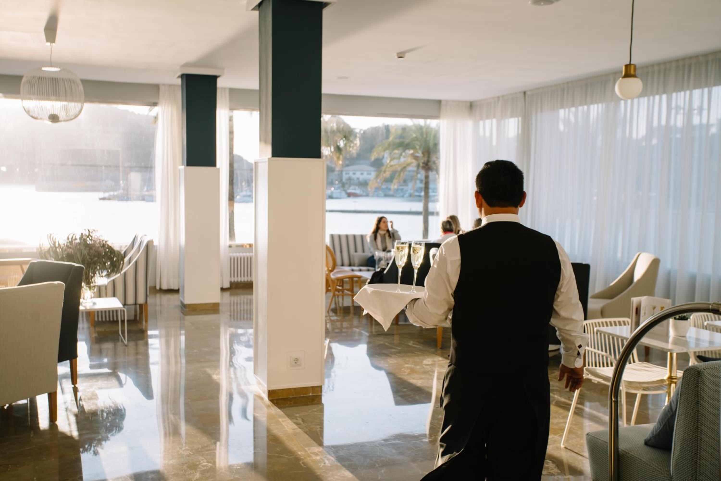 Indulge in the breathtaking views of the bay from our garden-terrace while enjoying a refreshing drink from the lounge-bar.