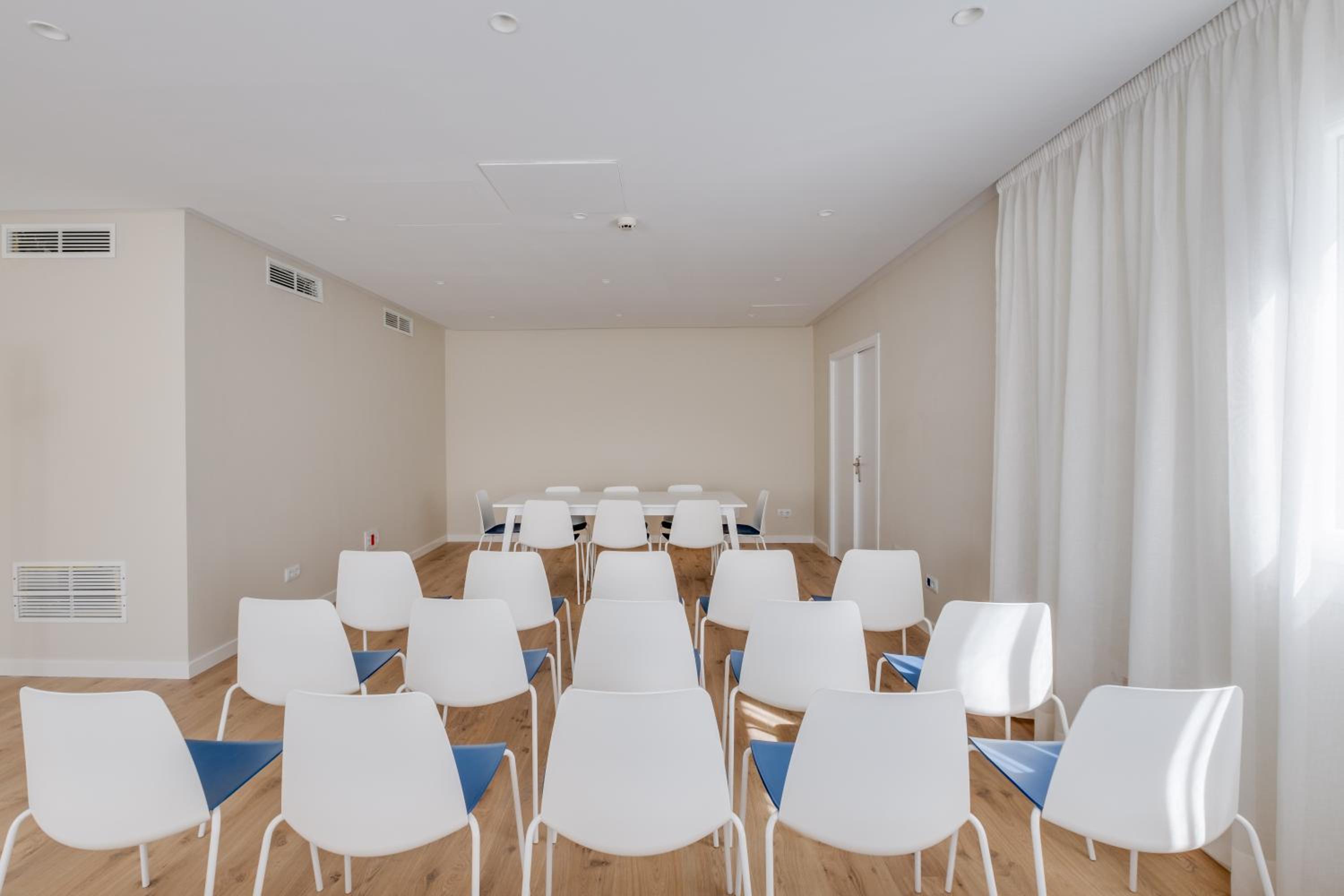 Unerträglich chemischer Geruch im ganzen Haus, unpersönlich kühle Atmosphäre. Großer Speiseraum- laut und sterile Atmosphäre.