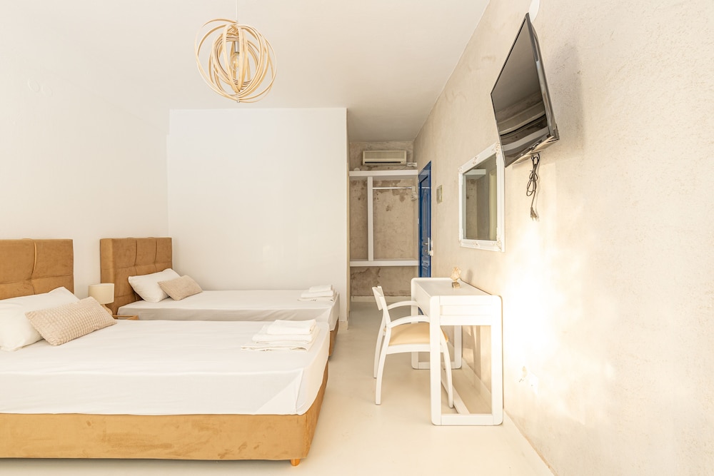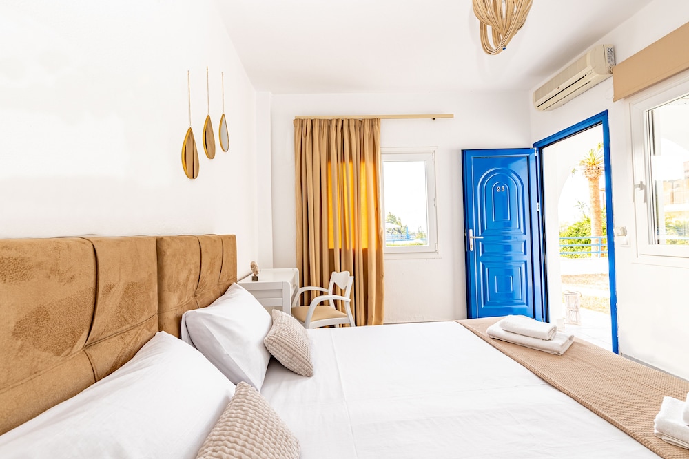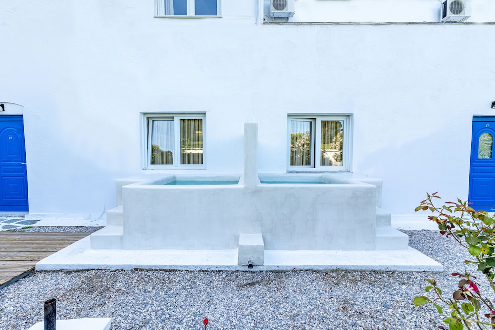 We stayed here as part of our summer tour of Greece. The place is absolutely beautiful. Has the Mediterranean vibe, close to the beach, super clean and well maintained. Staff was amazing. At the time of your stay they provided free breakfast and dinner. We highly recommend this place.