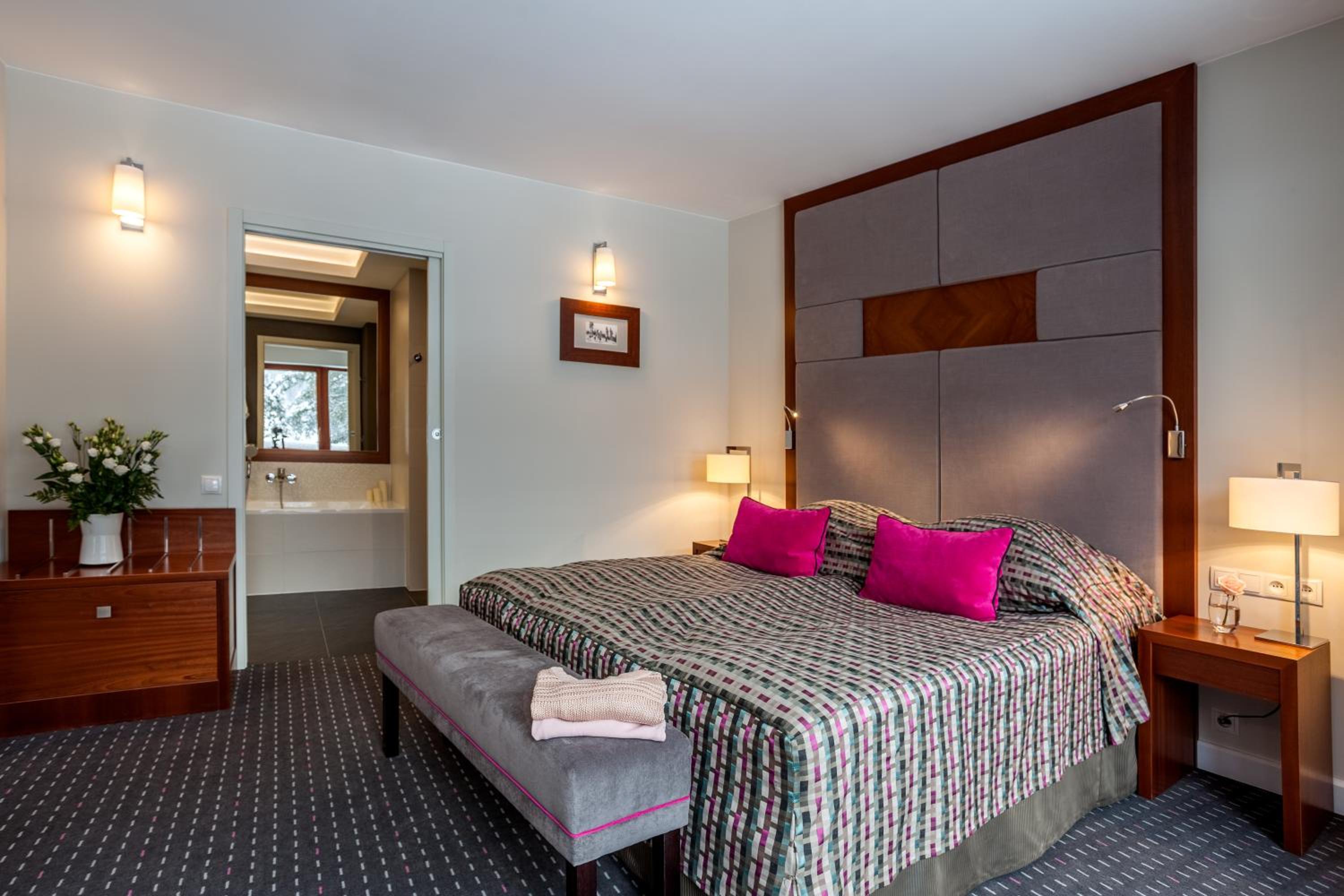 Hotel Spa Dr Irena Eris in Krynica Zdrój offers elegant rooms with modern amenities like satellite TV, private balconies, and free Wi-Fi. The stylish interior design and convenient facilities ensure a comfortable stay.