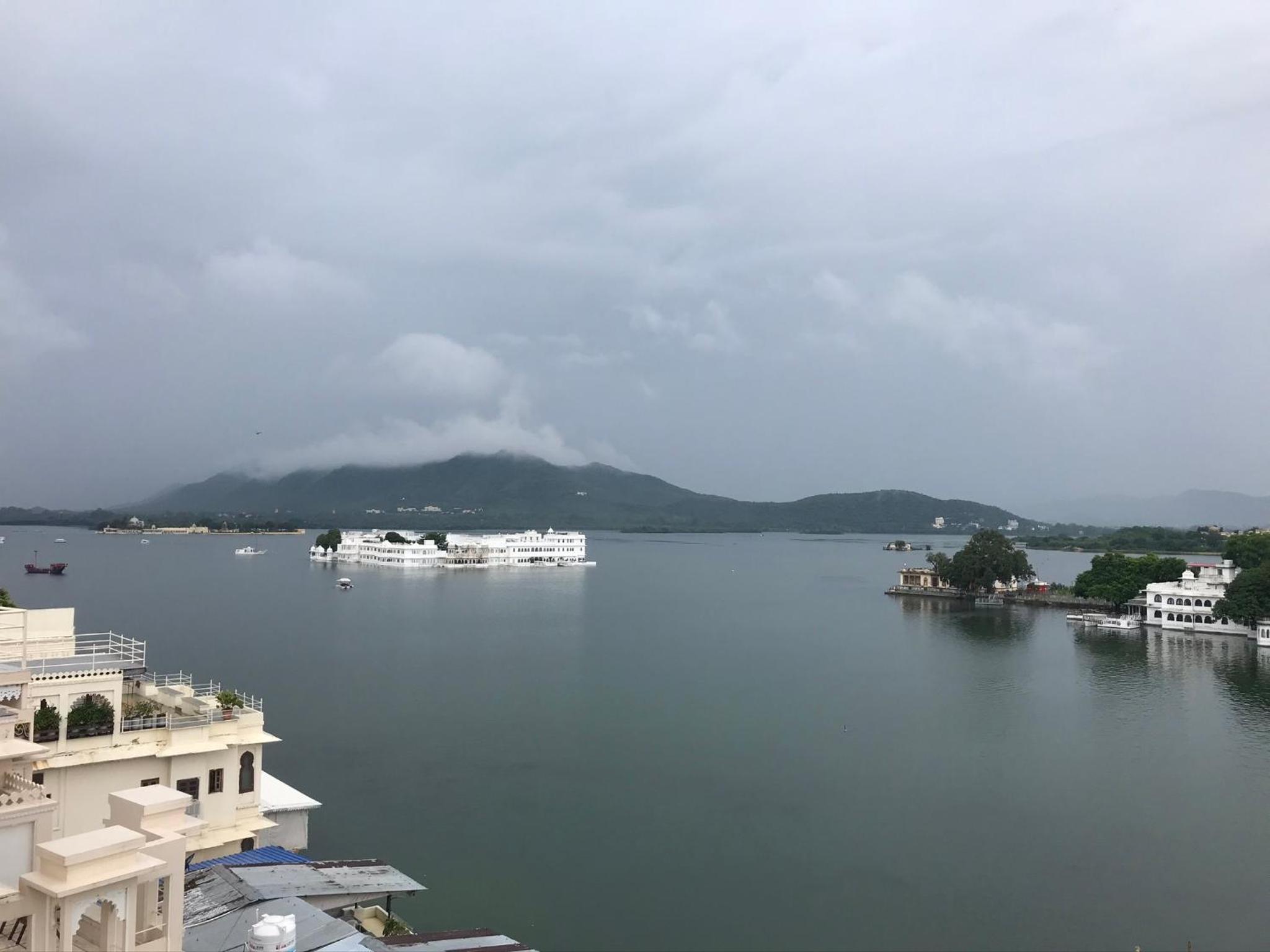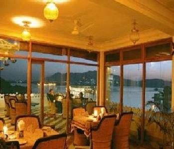 Ubicación frente al lago Pichola y la vista del restaurante