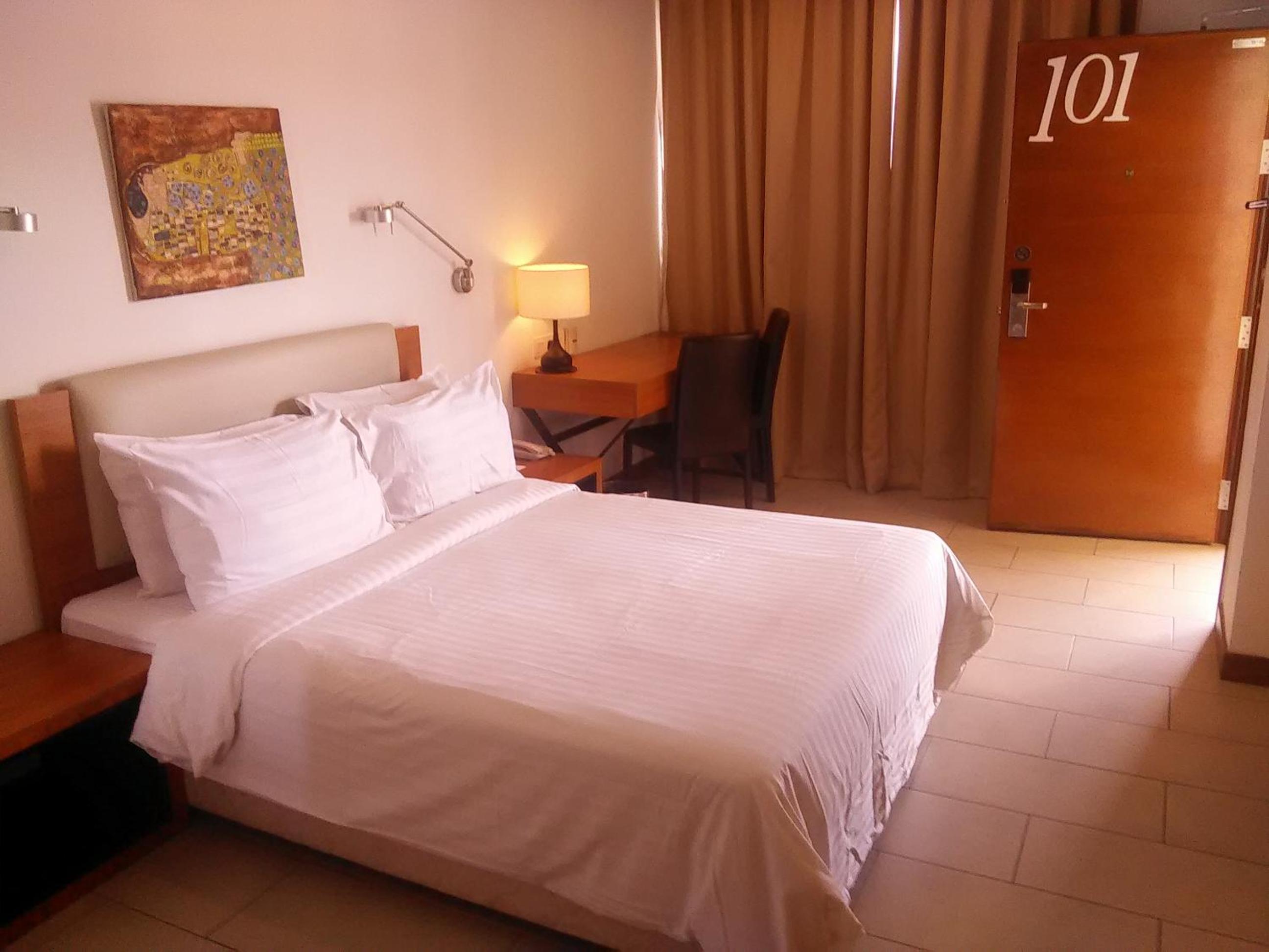 Está ubicado en una zona lejana al centro por lo que para ir a cualquier sitio hay que coger grab aunque está a 10 mins de todo y el grab es barato. Está cerca del aeropuerto y eso es una ventaja si como nosotros buscas un lugar para dormir mientras haces escala para ir a otro sitio, ya que hay mucho tráfico por las mañanas. La zona en la que se ubica es bastante sucia y genera bastante mala impresión. La foto del edificio en el anuncio es de cuando la inauguraron, ahora mismo es un edificio viejo y nada que ver con lo que sale ahí. El equipo es amable, pero el lugar es bastante deprimente.