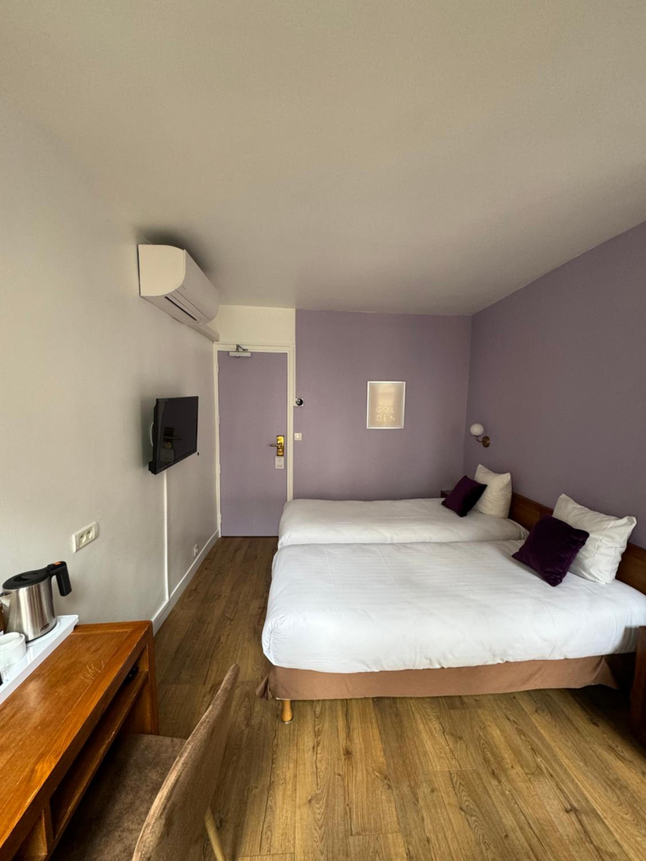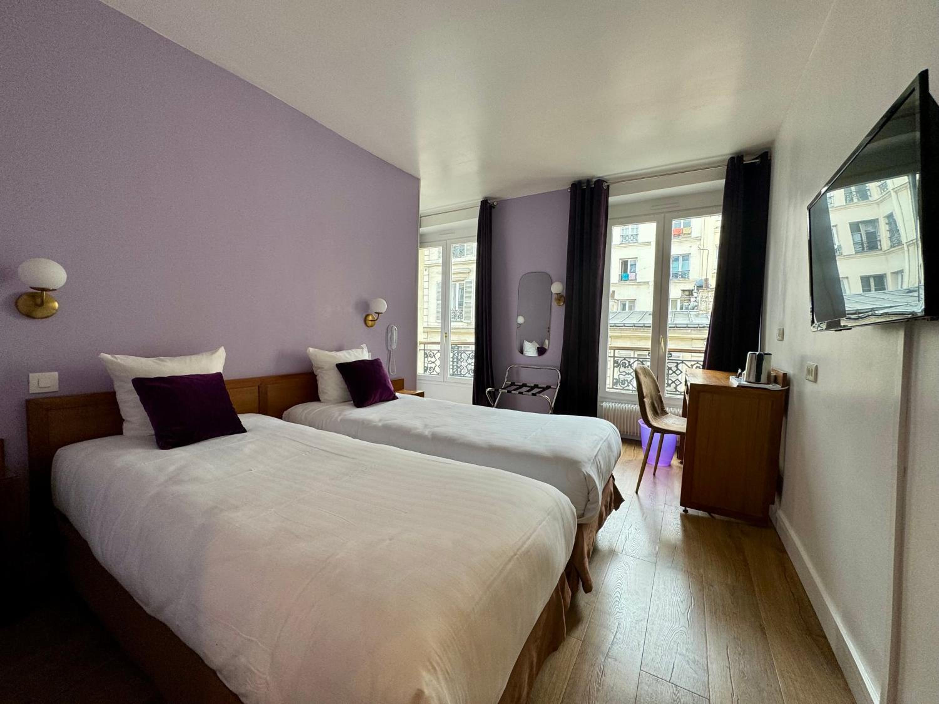 Each guest room at our hotel is uniquely decorated in a traditional French style, featuring large windows that flood the room with natural light. Enjoy modern amenities such as a flat-screen TV, minibar, and a safety deposit box for your convenience.