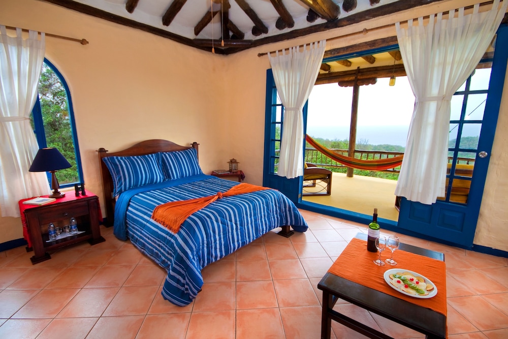 La Hosteria tiene una vista preciosa al mar y está en la cima de una pequeña montaña. Muy cerca de Puerto López.muy buen servicio personalizado, muy buena comida mañanita, el estado de la habitación es bueno.