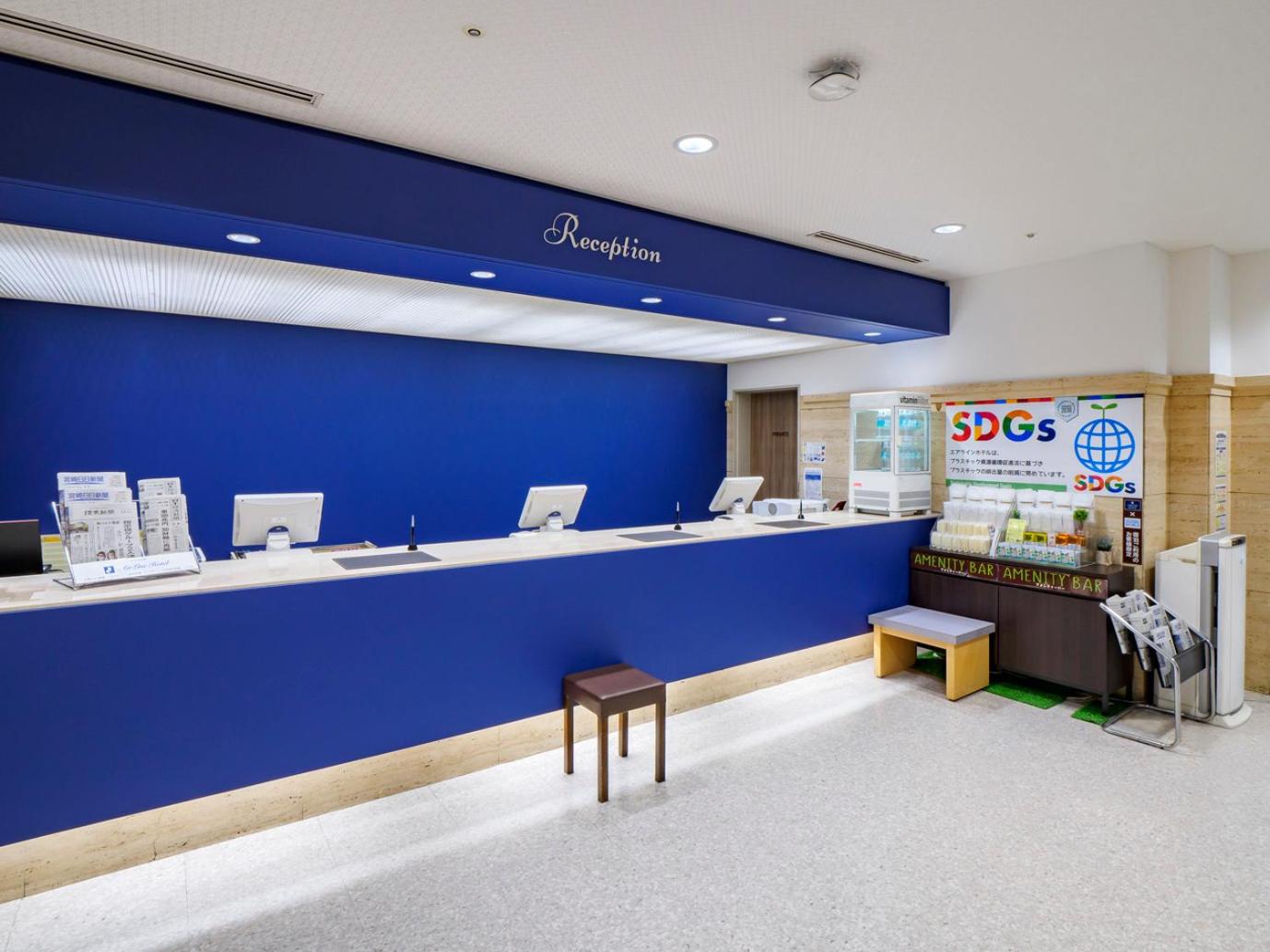 Airline Hotel is conveniently situated just a 10-minute walk from JR Miyazaki Station and a short 20-minute drive from Miyazaki Airport, making it easily accessible for travelers.
