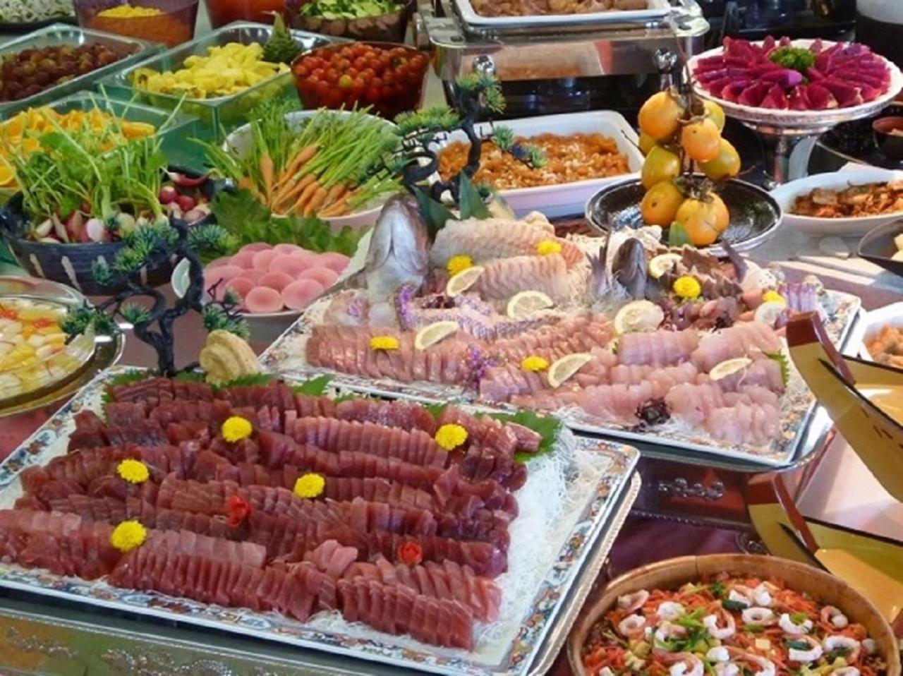 夕食のブッフェのレパートリーや種類はやや少なめで満足感はありませんでした。