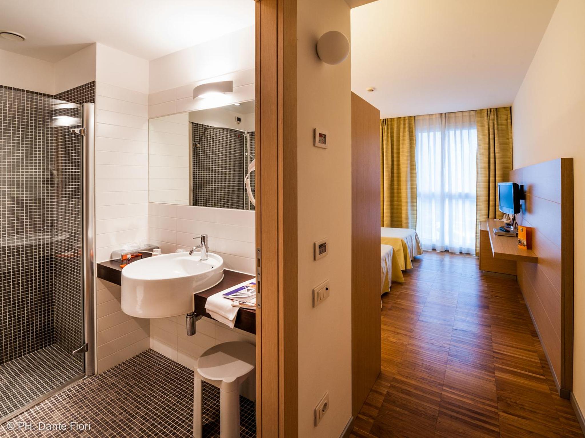 The air-conditioned rooms at Schio Hotel are spacious and feature wood floors, providing a cozy and inviting atmosphere. Enjoy amenities such as free wired internet access, a minibar, and a flat-screen TV with satellite and pay-per-view channels for your entertainment.