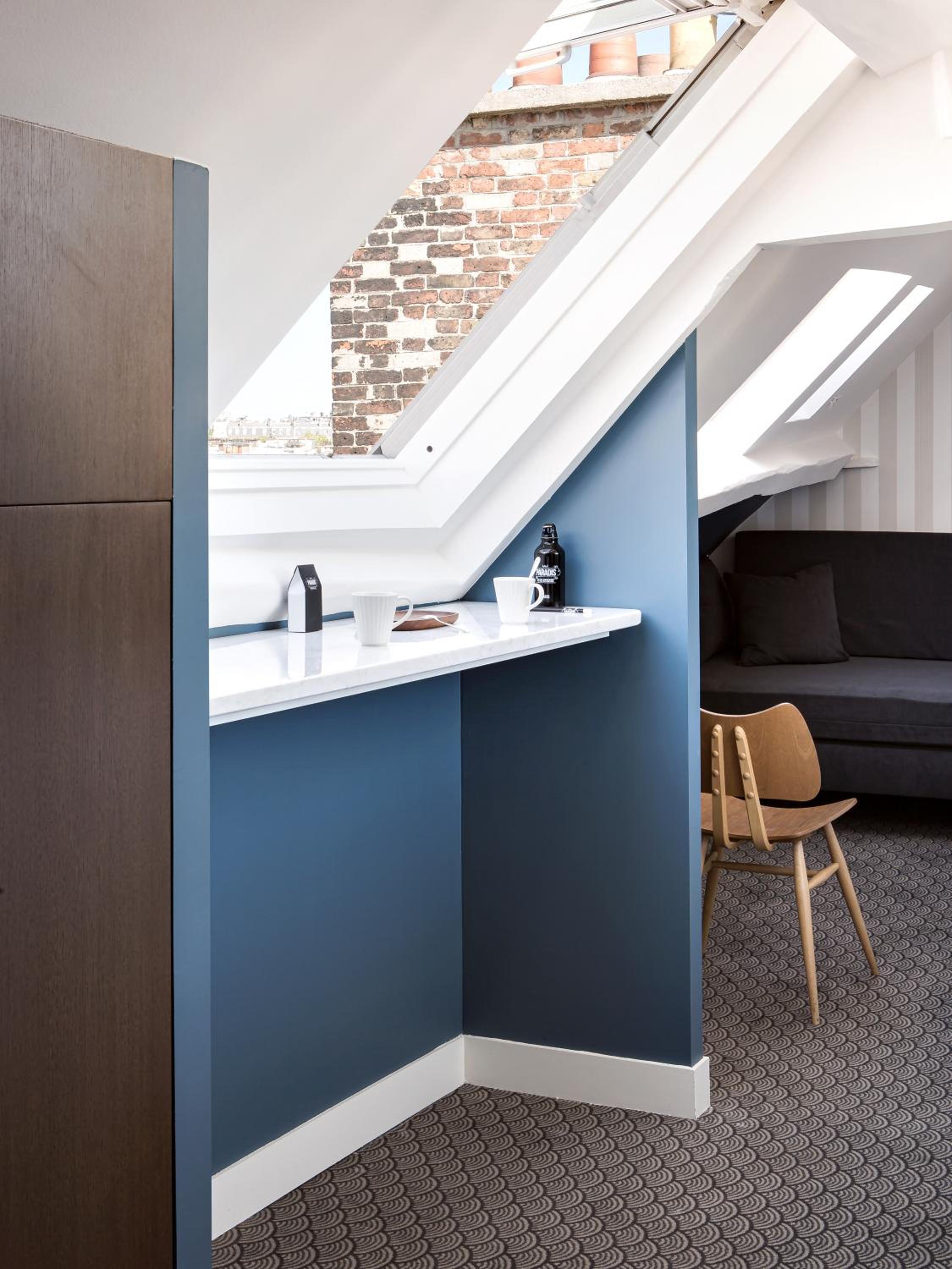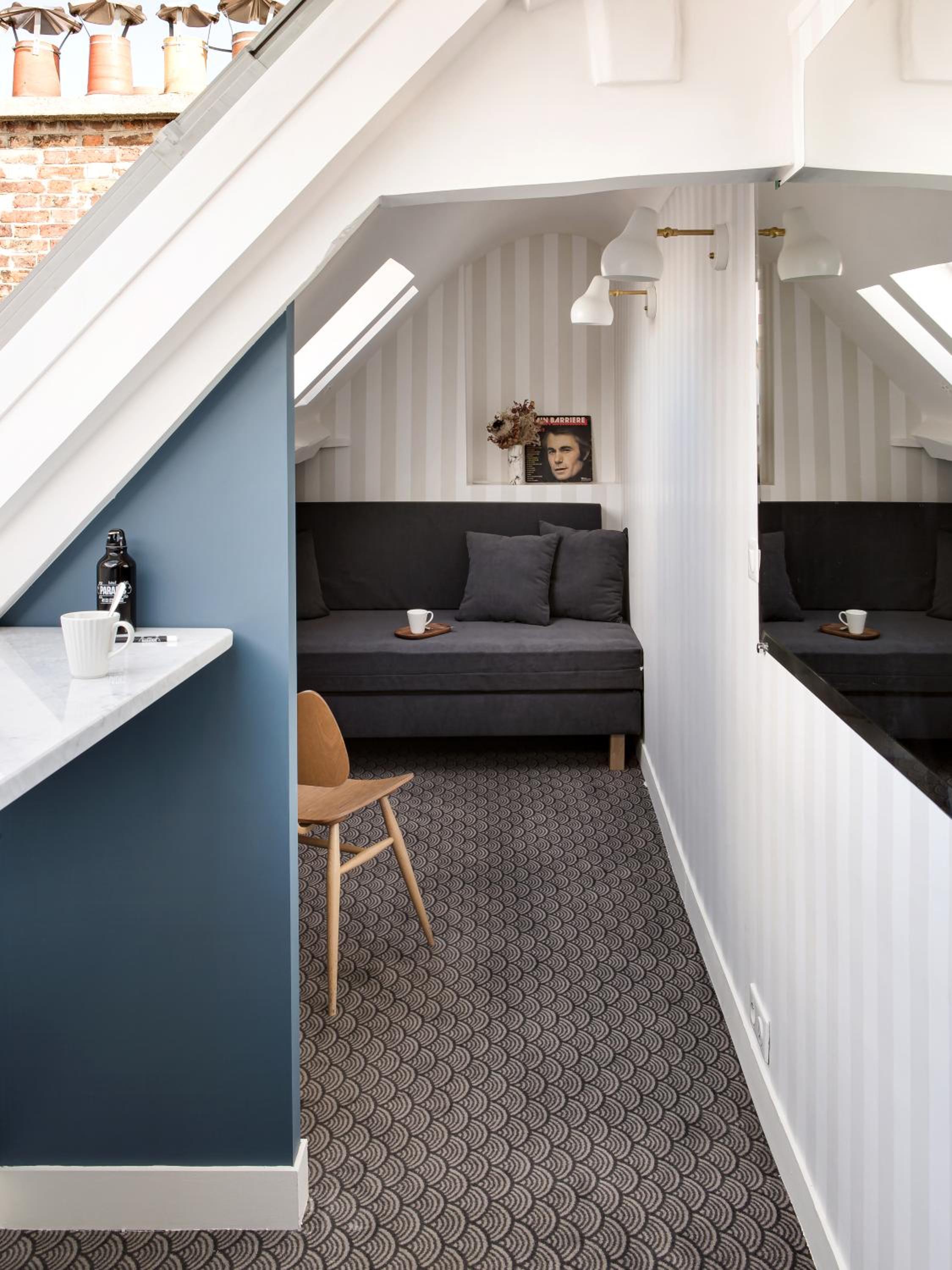 De plus , située sous les toits il fallait monter un étage à pieds après l'ascenseur.Ayant un léger handicap moteur ce détail non spécifié lors de la réservation était un peu désagréable.