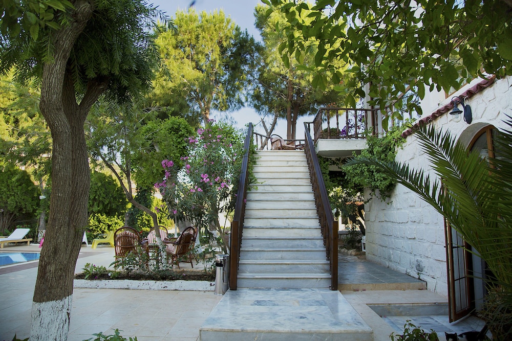 Burası hakkında söyleyecek çok şey var ama öncelikle burası bir otel değil bir pansiyon. Aslında pansiyonda daha fazla hizmet mevcut. Fotoğraflarından bakıp aldanılacak çok şey var. Mesela artık bir plajı yok. Fotoğraflarda gördüğünüz o harika plajı bırakmışlar onun yerine başka bir otelin plajını kullandırıyorlar. Oraya da misafir kartı verip giriyorsunuz ama bize hiç kart vermediler onun yerine “gidin girersiniz sorun olmaz” denildi. İlk gittimizde ise “kart yoksa kişi başı 50₺ giriş ücreti vermeni lazım” cümlesiyle karşılaştık. Kart verilmediğini öylece gitmemiz gerektiğini söylediğimizde anlayışla karşıladılar aldılar. Sonraki 3 günde de kartsız girdik ve kabul ettiler.bir de otelle deniz arasında da keçi yolunda inip çıkmanız gerekli.
