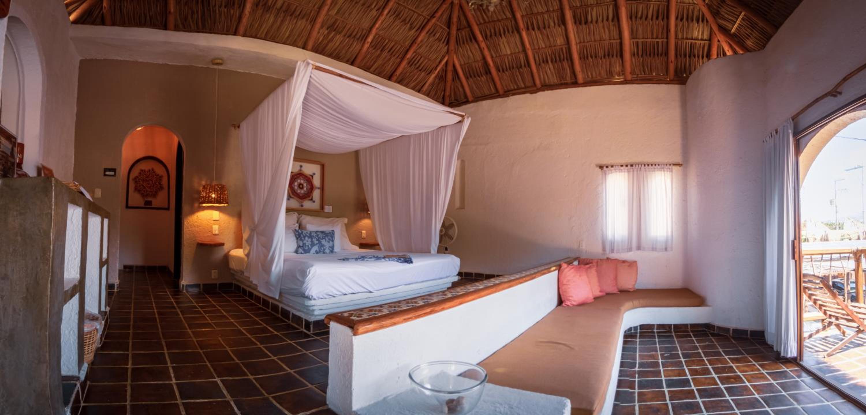 Chic Mexican-style Rooms: Relax in spacious rooms featuring free Wi-Fi, a balcony with a hammock, and modern Mexican decor, providing a cozy retreat after a day of sun and sand.
