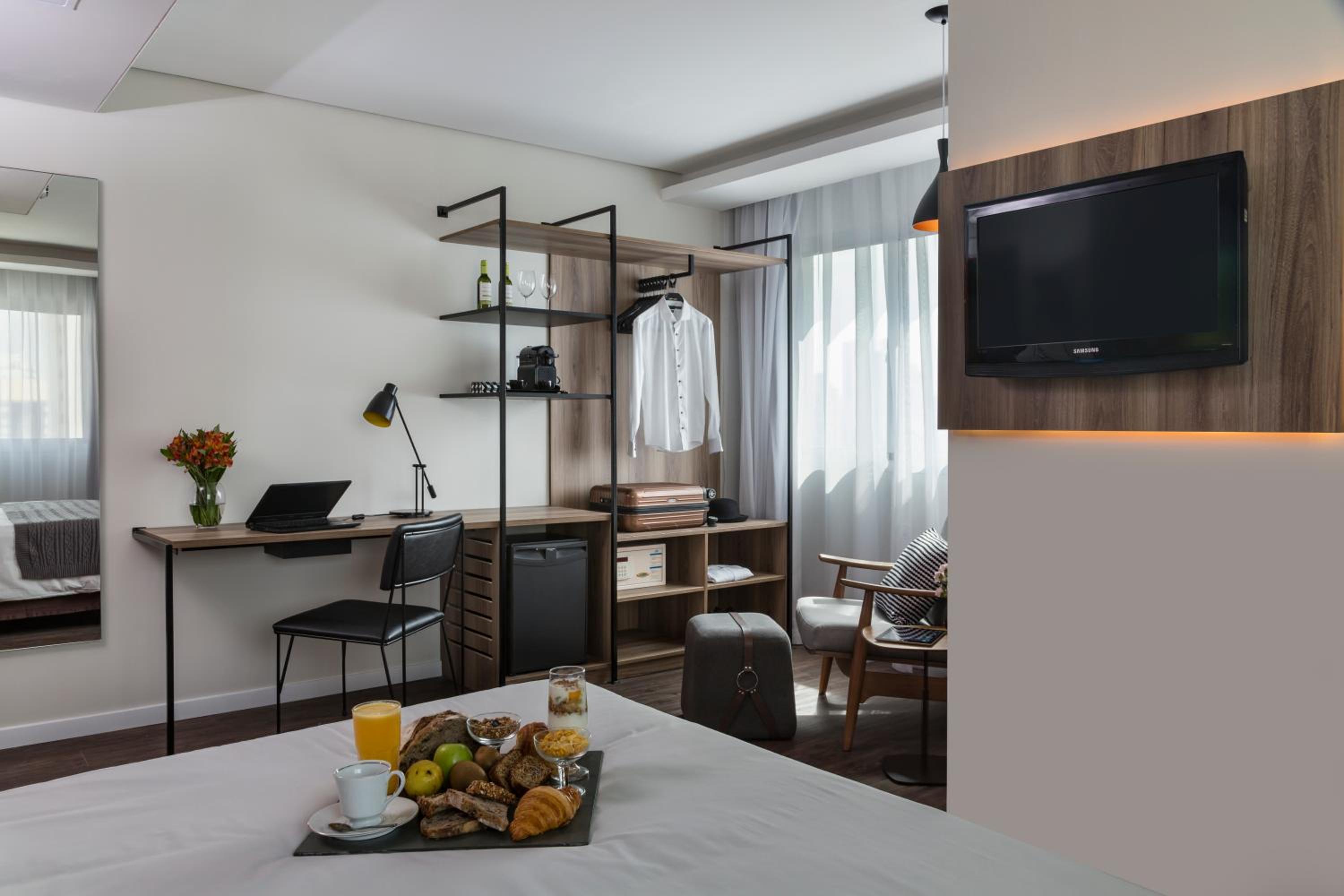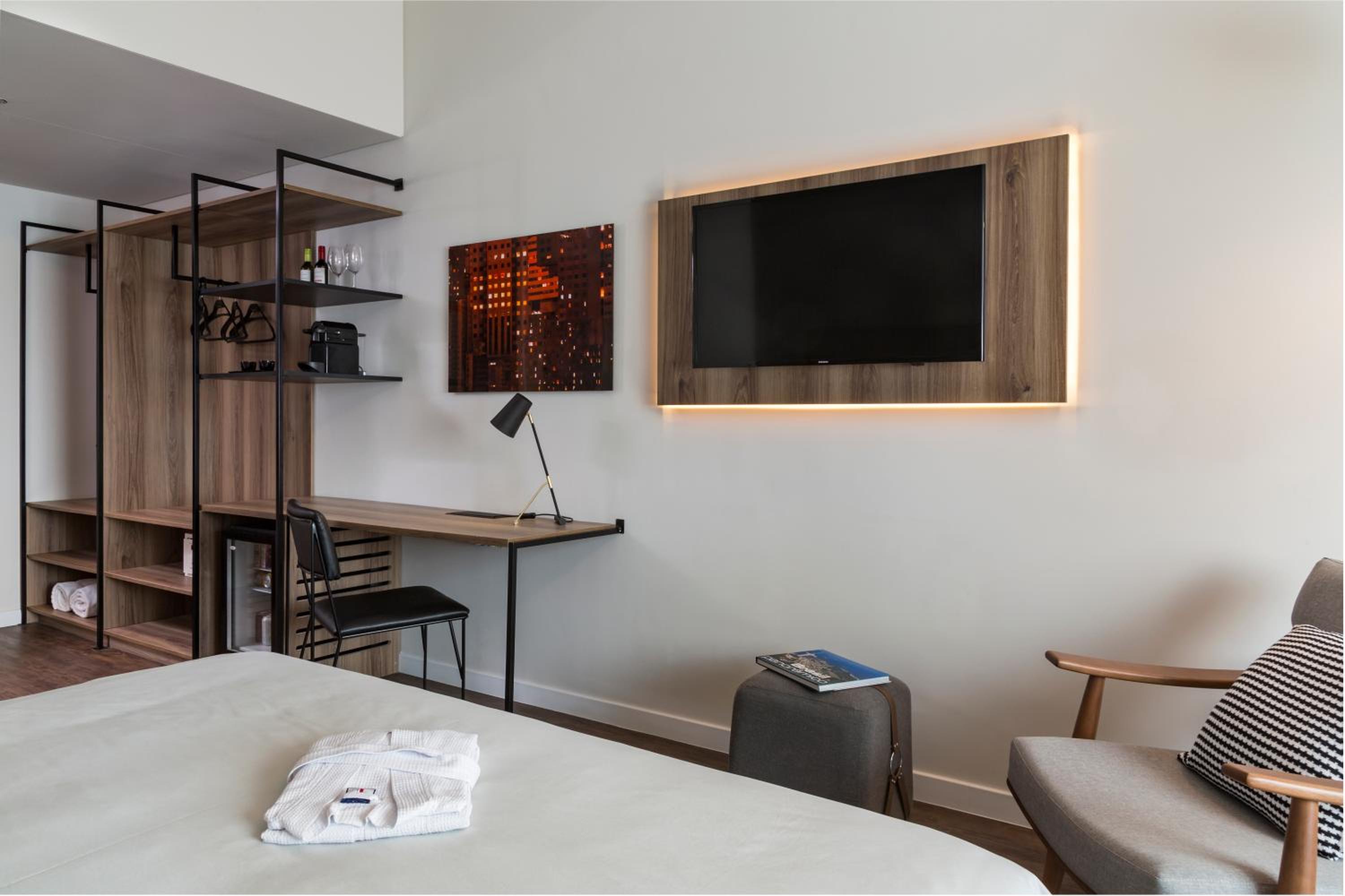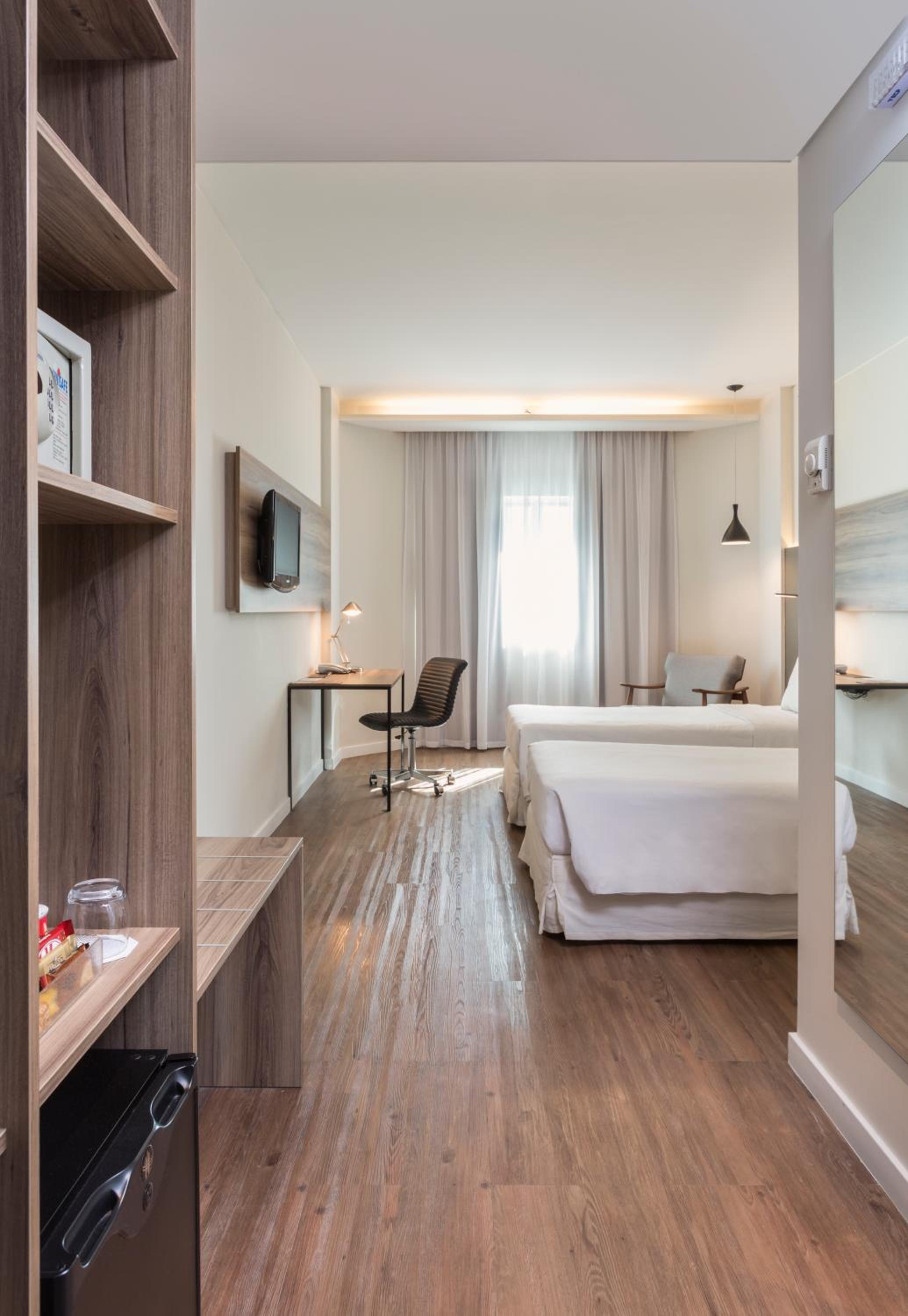 Experience modern rooms with air conditioning, Smart TV, and free WiFi at Intercity São Paulo Ibirapuera. Relax in comfort with a minibar, desk, and stylish private bathroom amenities.