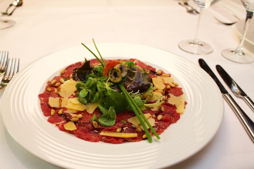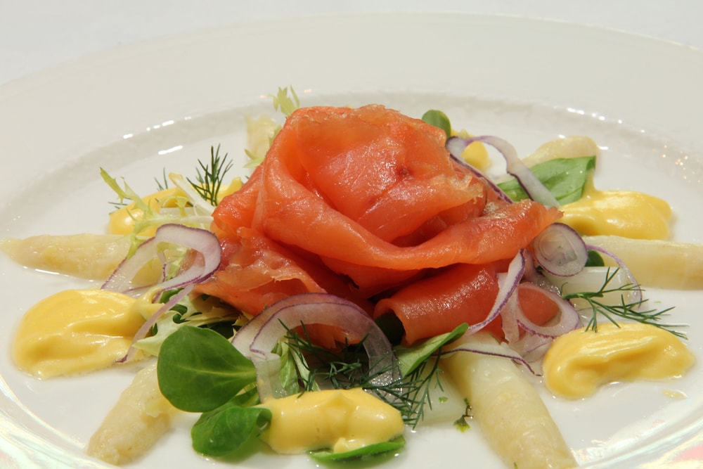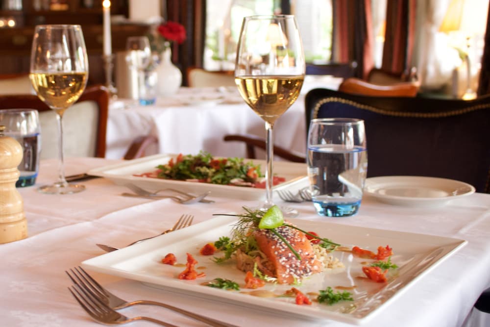 I chose this w/o knowing what to expect. Needed a place for 2 nights to be close to family. Small town atmosphere which had a great ladies store walking distance. The Hotel itself had great food and many patrons were eating on the patio on Saturday afternoon. The diningroom was busy w locals inside as well in the evening. Our room was spacious and clean. Breakfast for 15 euro was good value.