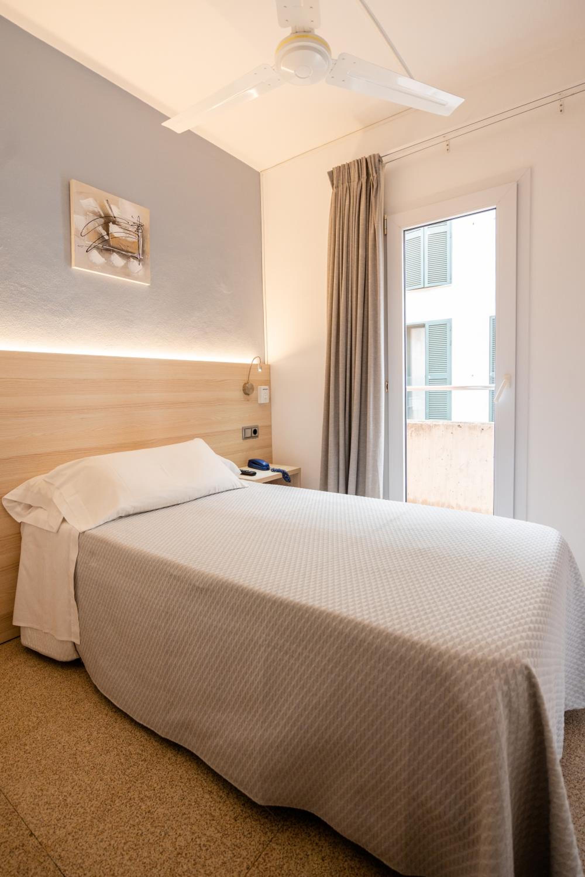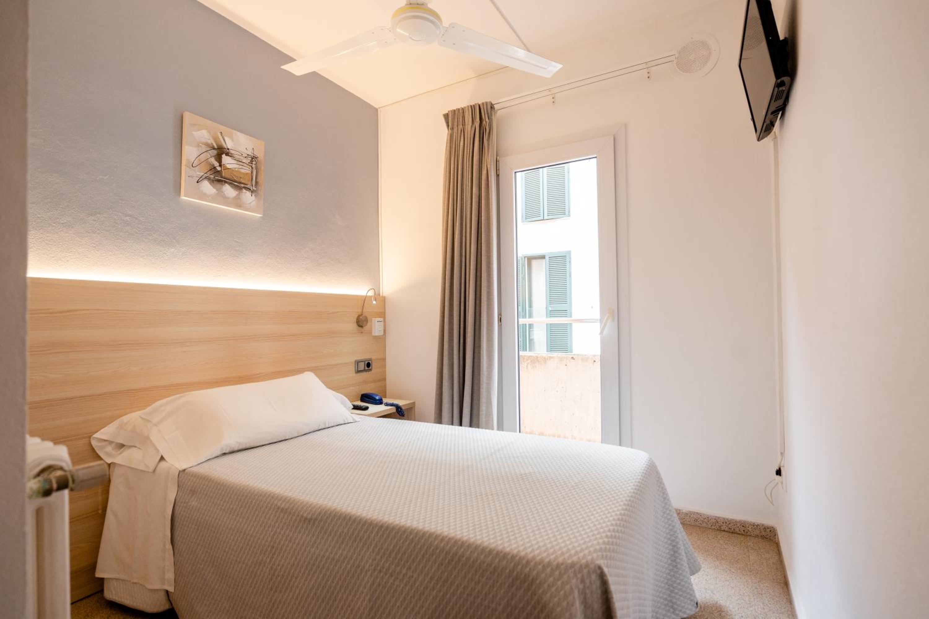 Excelente ubicación, muy cerca del centro y con varios supermercados, bares y restaurantes a tan solo unos pasos. Se puede ver todo el puerto de Mahón en tan solo cruzar la calle. Personal muy amable y servicial, con servicio de cafetería. El personal me recomendó lugares para ir a comer o visitar, que superaron mis expectativas. Lugar muy limpio y agradable. La habitación individual, pequeña pero ideal si se va en solitario. Hay ventilador en el techo con intensidad regulable y las camas muy cómodas. Relación calidad - precio excelente.