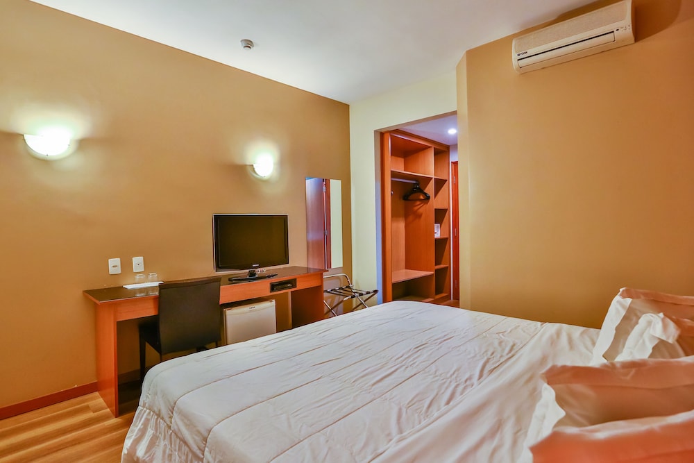 Hotel simples, próximo a uma rodovia, fora do centro, dificultando deslocamentos para refeições, e sem elevador. Precisando de um local apenas para jantar e dormir, durante uma viagem mais longa, escolhemos por ter restaurante, mas dificilmente voltaremos. Existem opções melhores com preço semelhante, próximos ao Shopping, com melhor qualidade e localização. No jantar havia um buffet com preço de 58,00 por pessoa, sem bebidas, para uma comida bastante simples. Arroz, feijão, macarrão em parafuso, salada de alface, batata doce, bife em tiras e file de frango com queijo e gelatina (apenas um tipo de sobremesa), sendo cobrado o mesmo valor para crianças maiores de 7 anos, que muitas vezes não chegam a comer um prato inteiro.