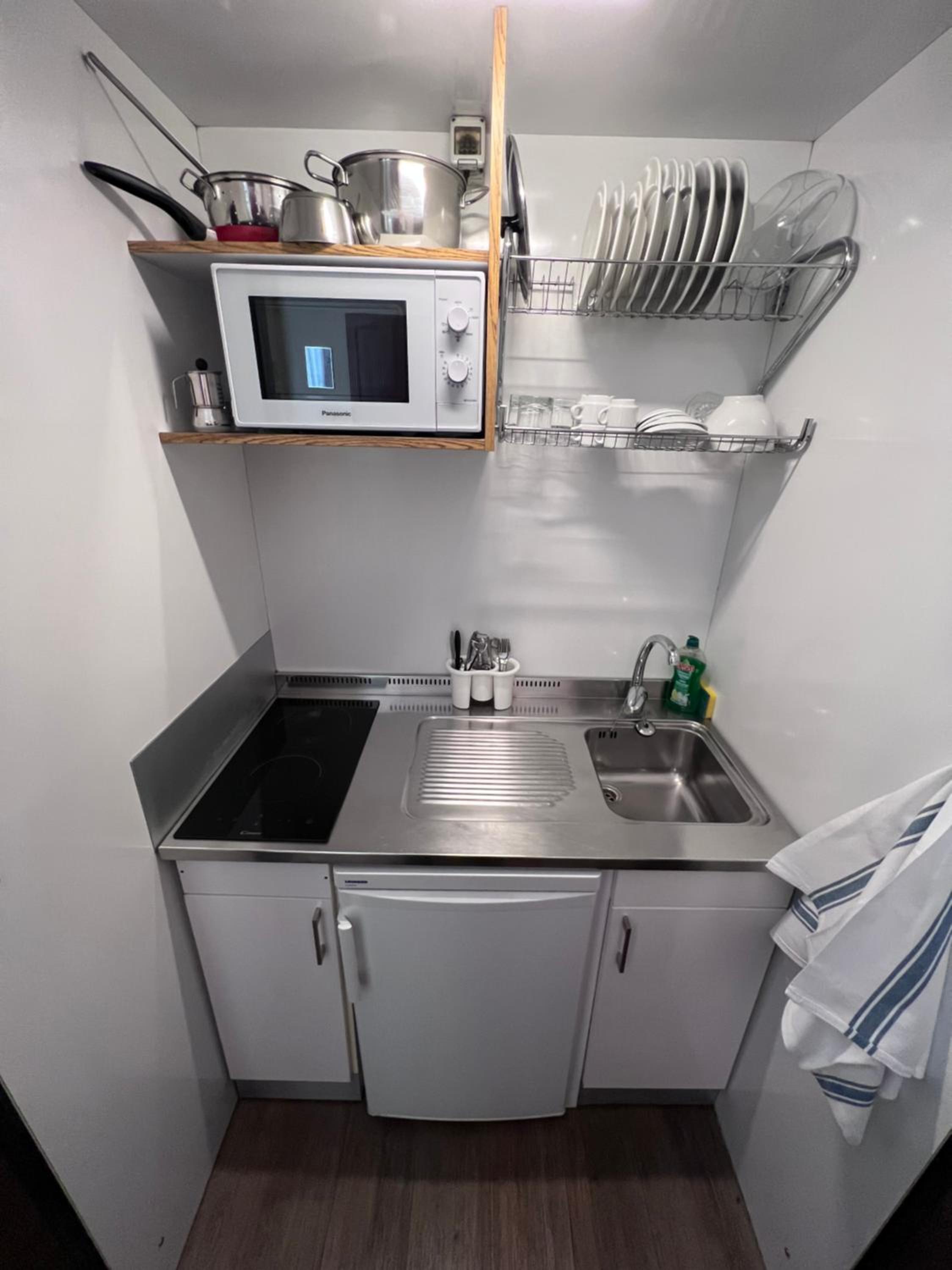 Sarebbe meglio fornire qualche utensile in piu in cucina e lasciare il minimo per un caffe' o un the. Anche se il caffe' e' gratis in struttura, al mattino la gente non ha tanta voglia di uscire in pigiama fuori per bere un caffe'. Lasciare anche un po di olio, sale, insomma il minimo per preparare una roba semplice.
