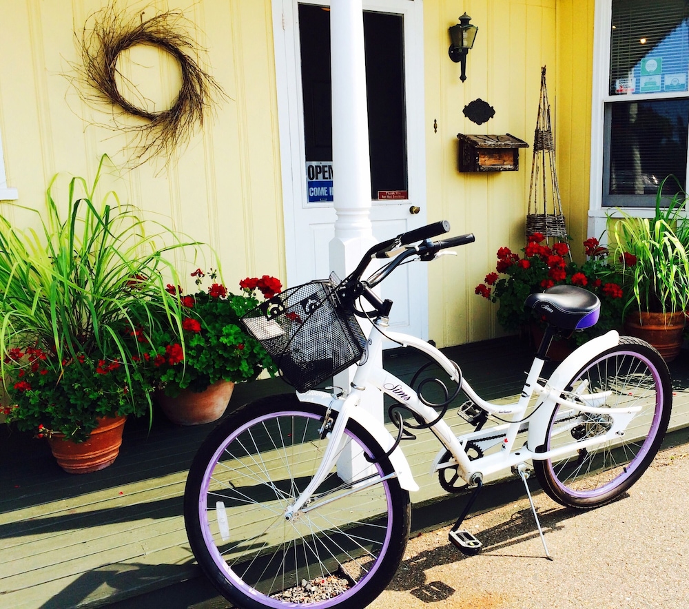 The Inn is located far enough from the street to have minimal traffic noises but close enough to shopping areas. There is a seating area on the front porch with lots of pots of beautiful geraniums giving it that home like feeling. The room was large, clean and had everything we needed after a day of exploring. The onsite laundry was convenient and a BBQ was available. The owners were very friendly and helpful.