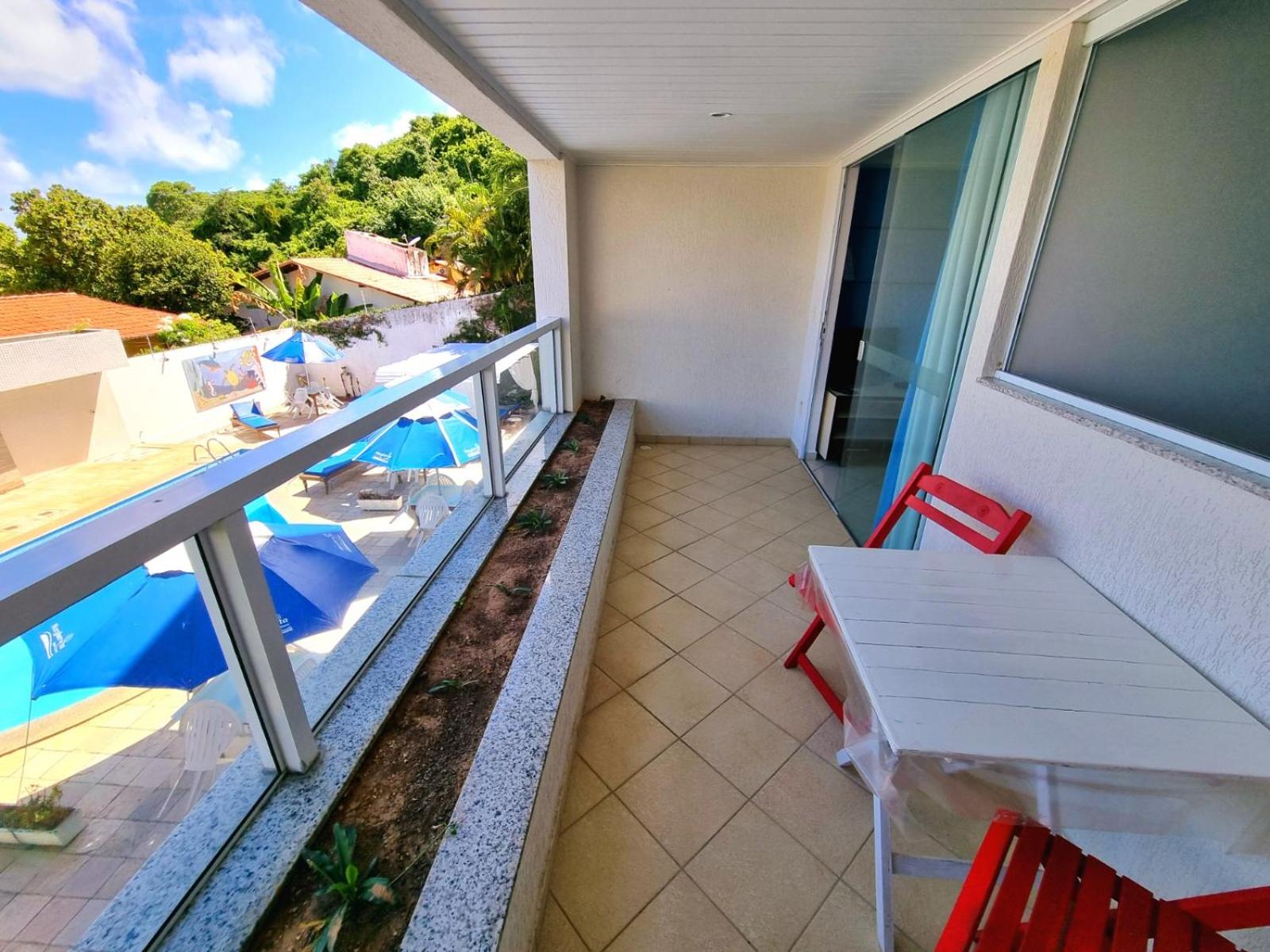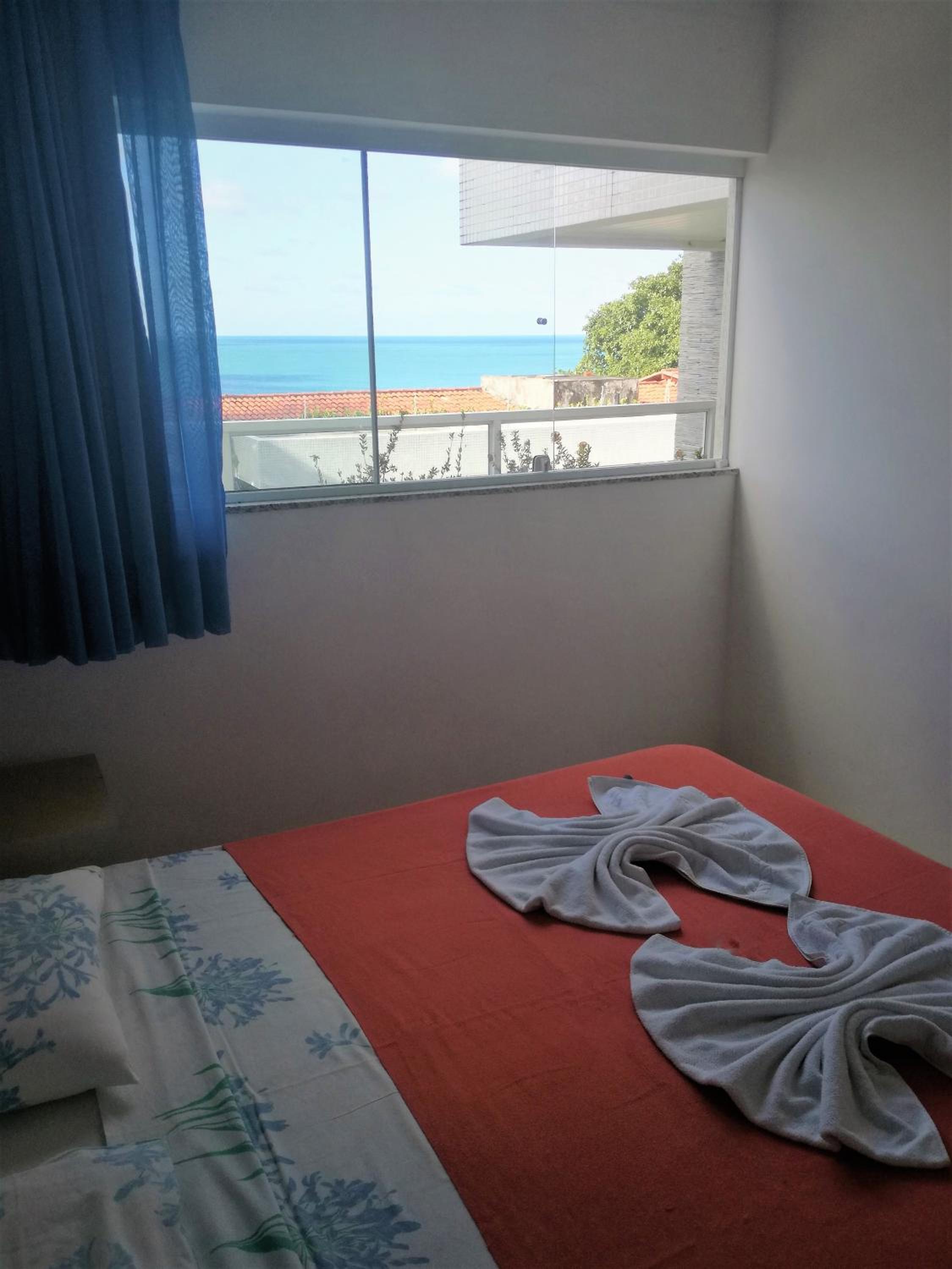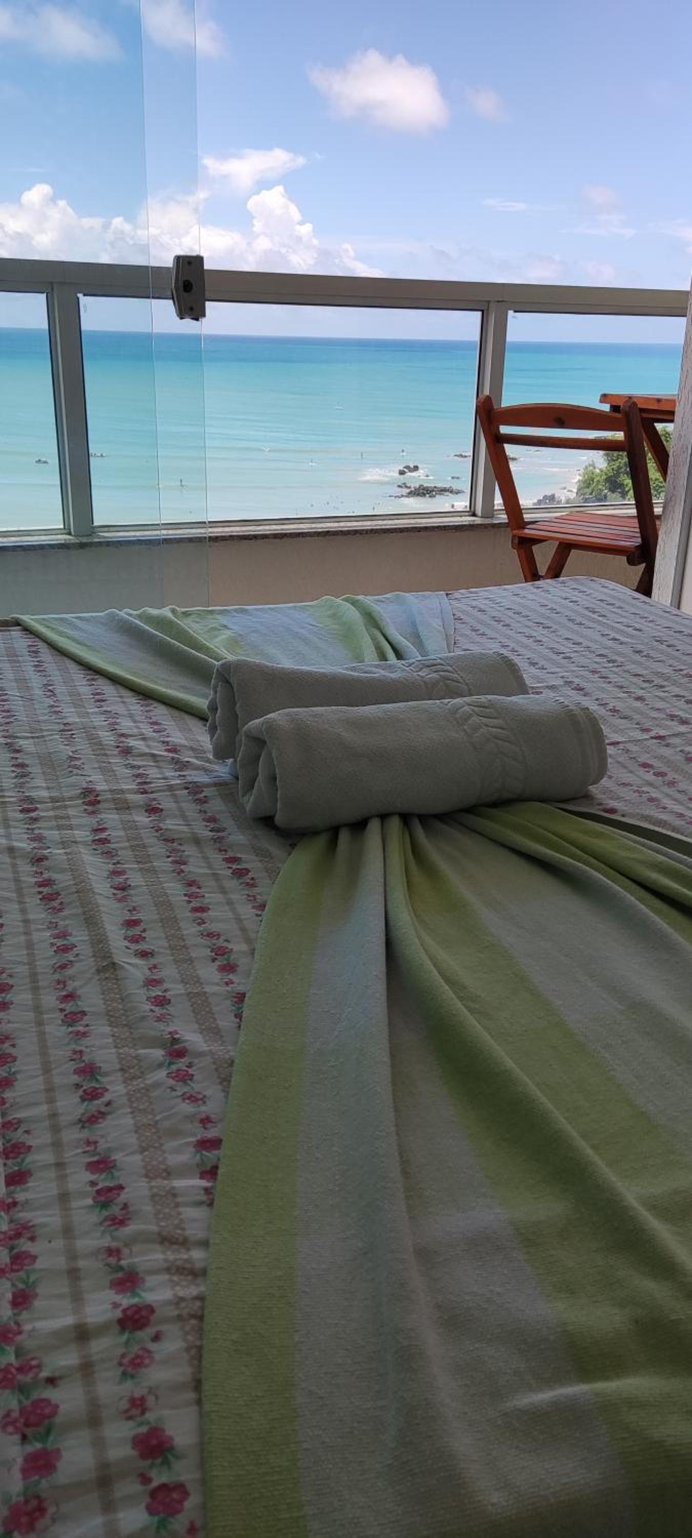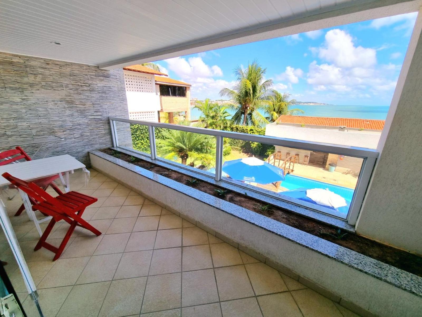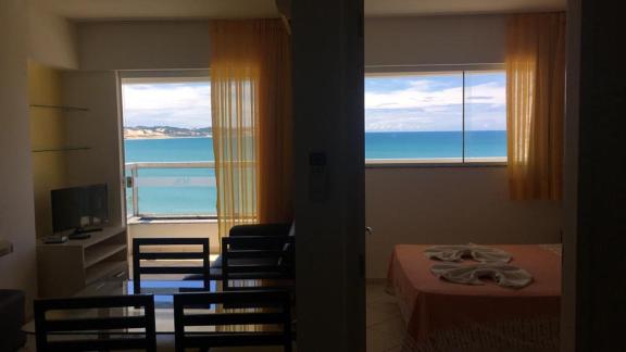 Dos cômodos, sacada de frente pro mar e para a piscina, limpeza, silêncio, muita tranquilidade.