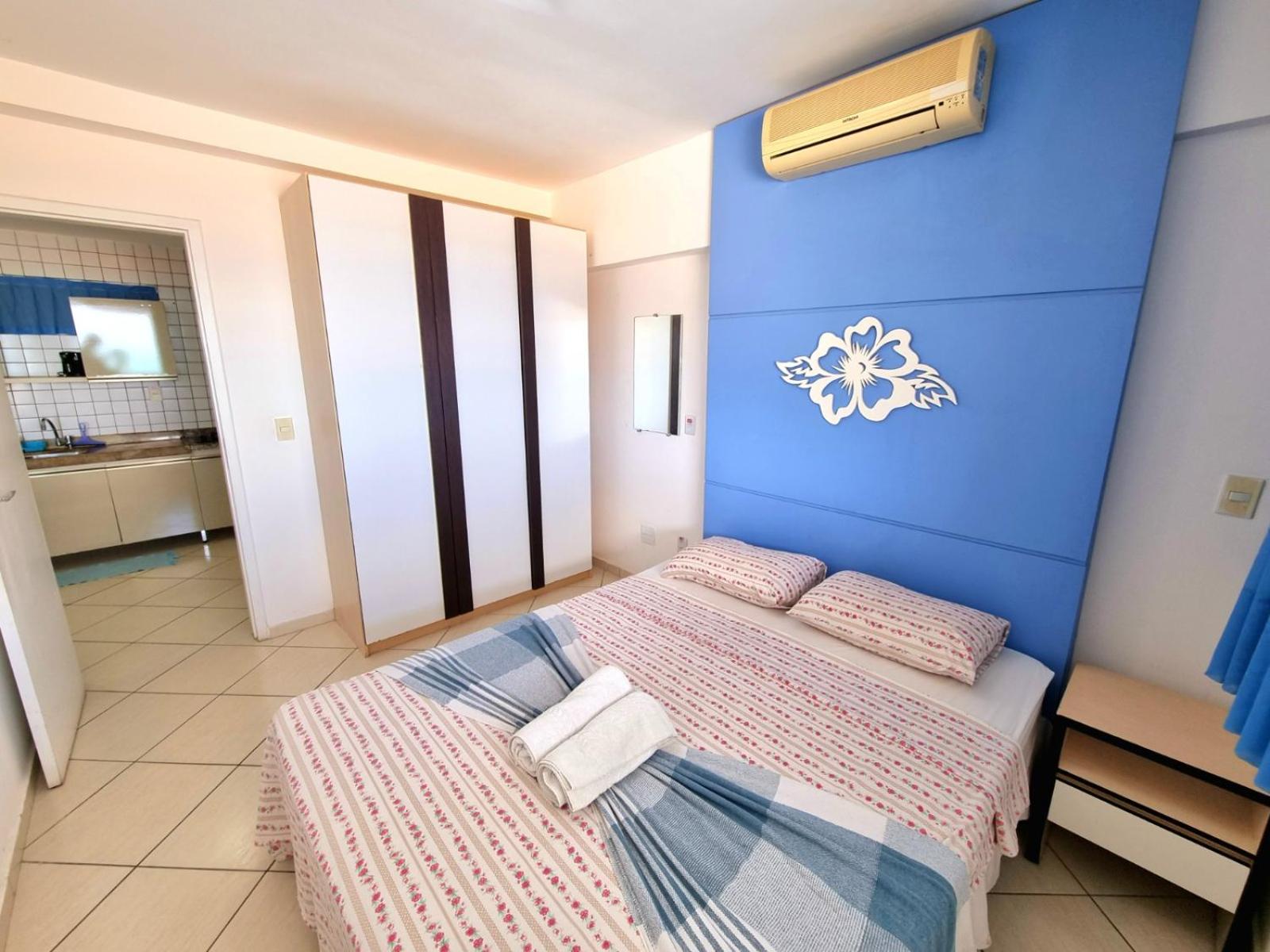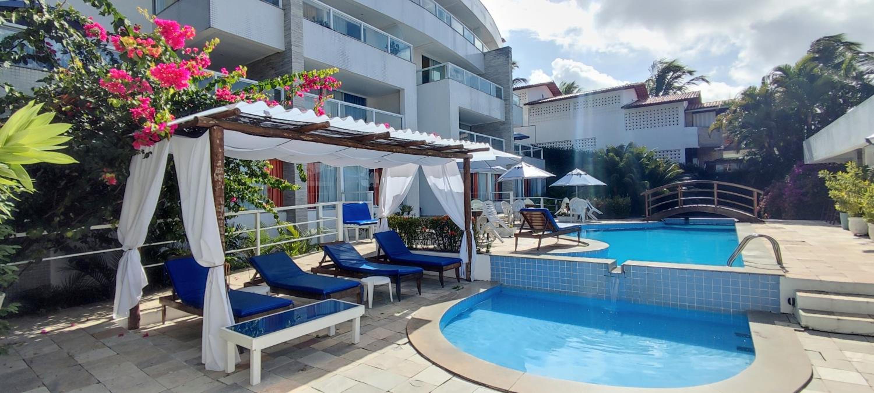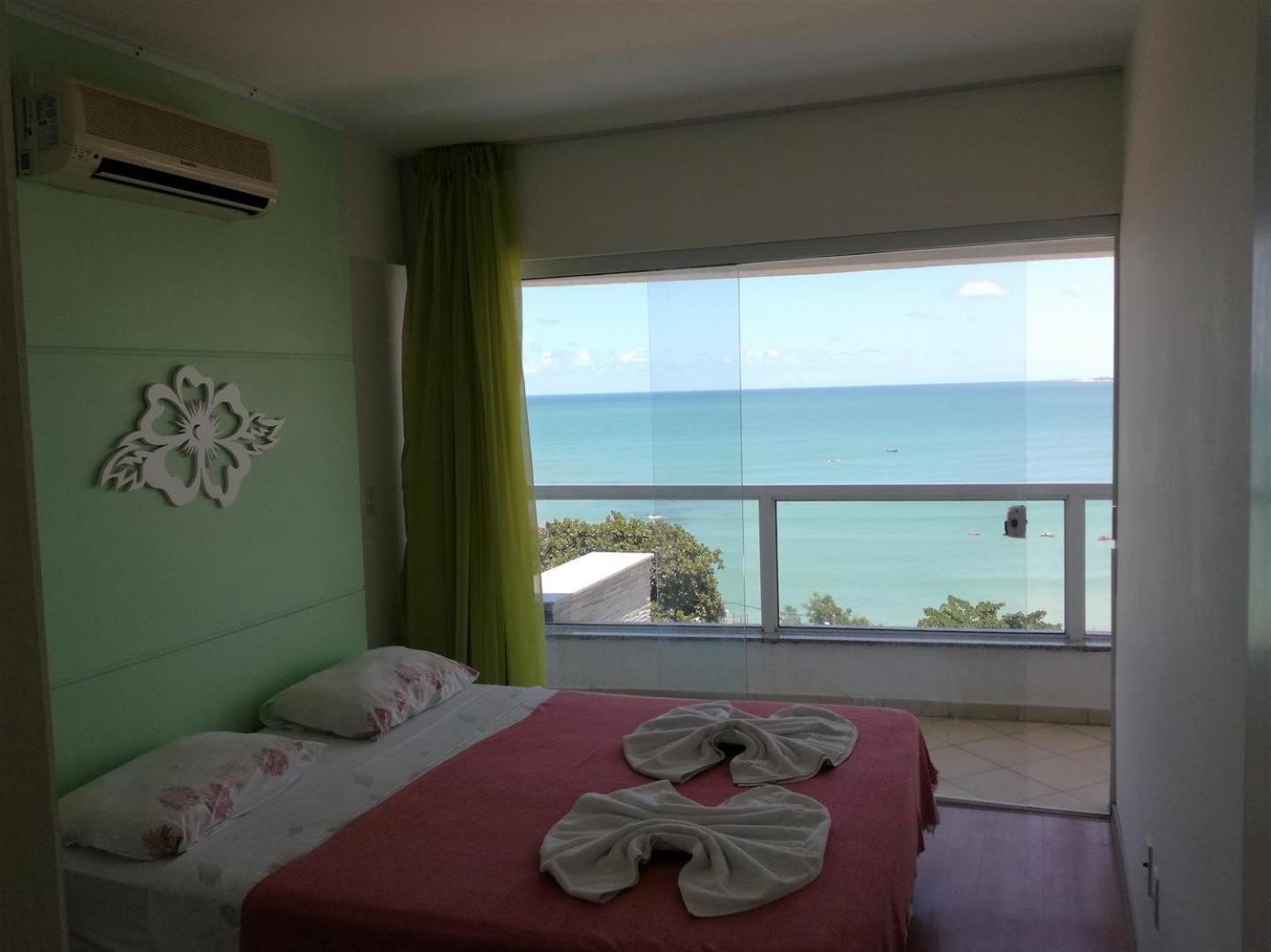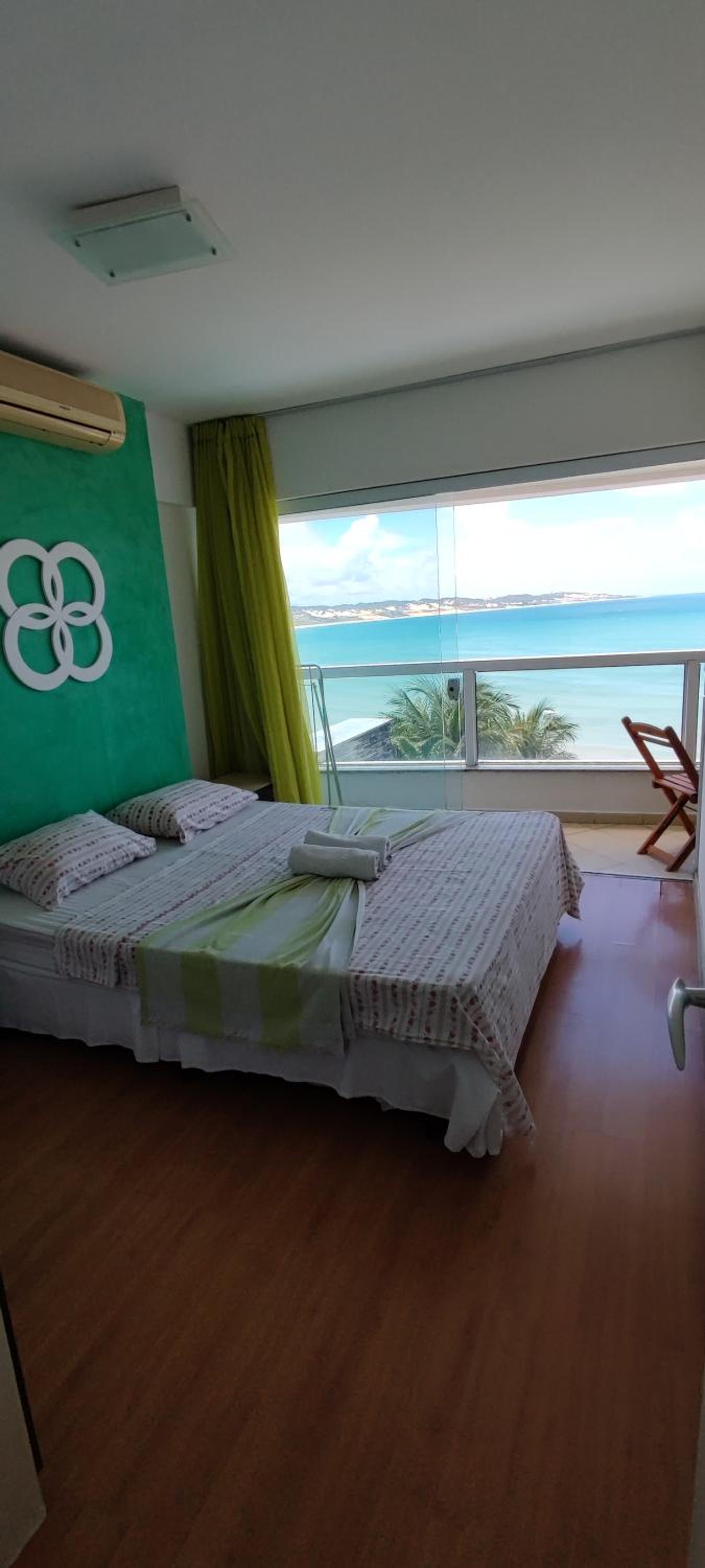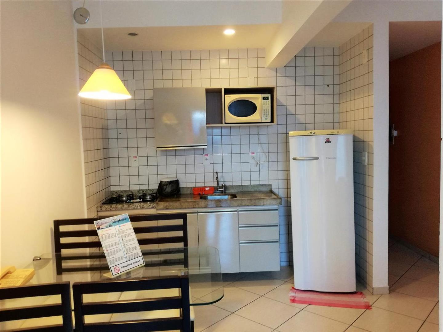 Dos cômodos, sacada de frente pro mar e para a piscina, limpeza, silêncio, muita tranquilidade.