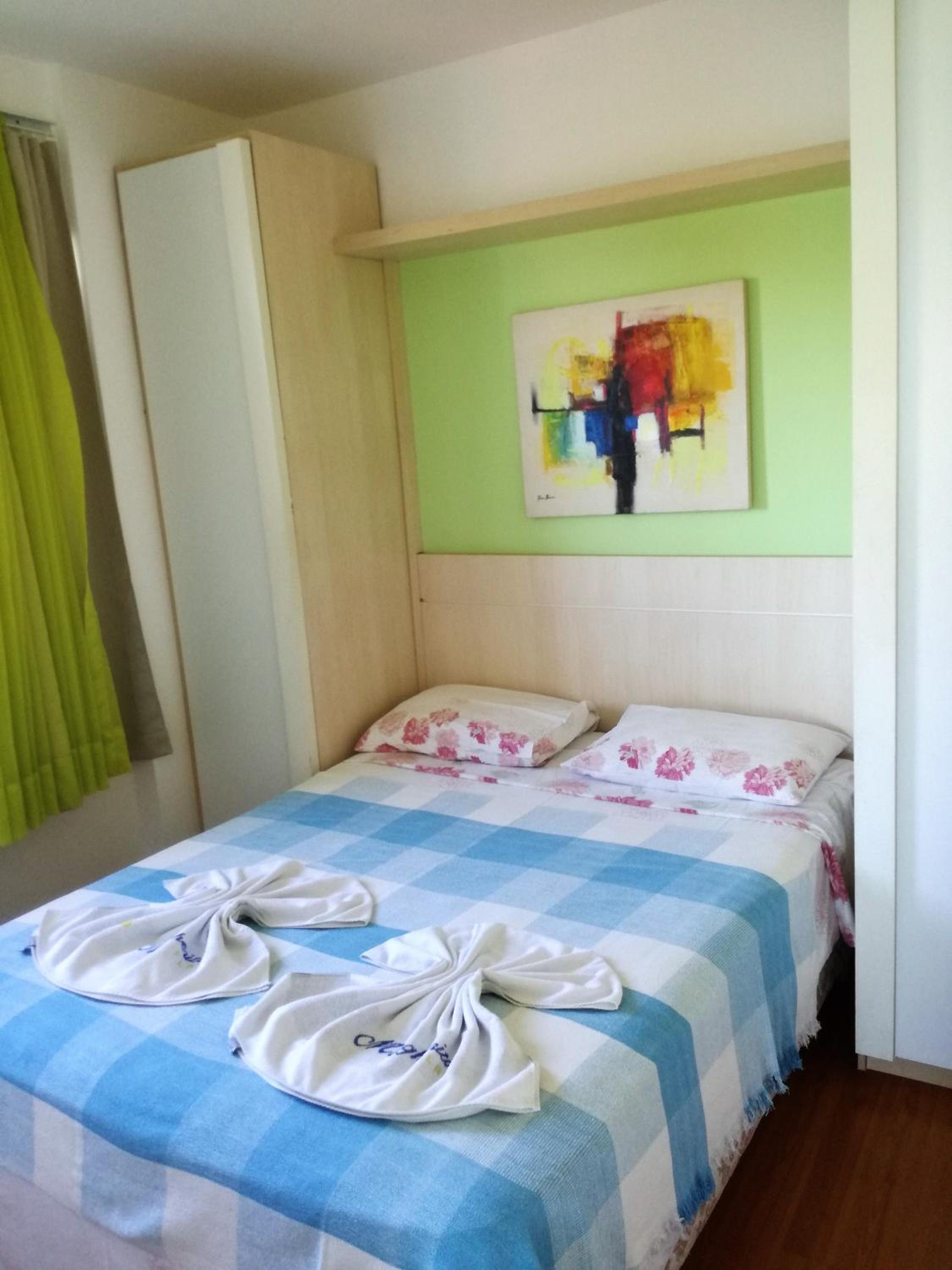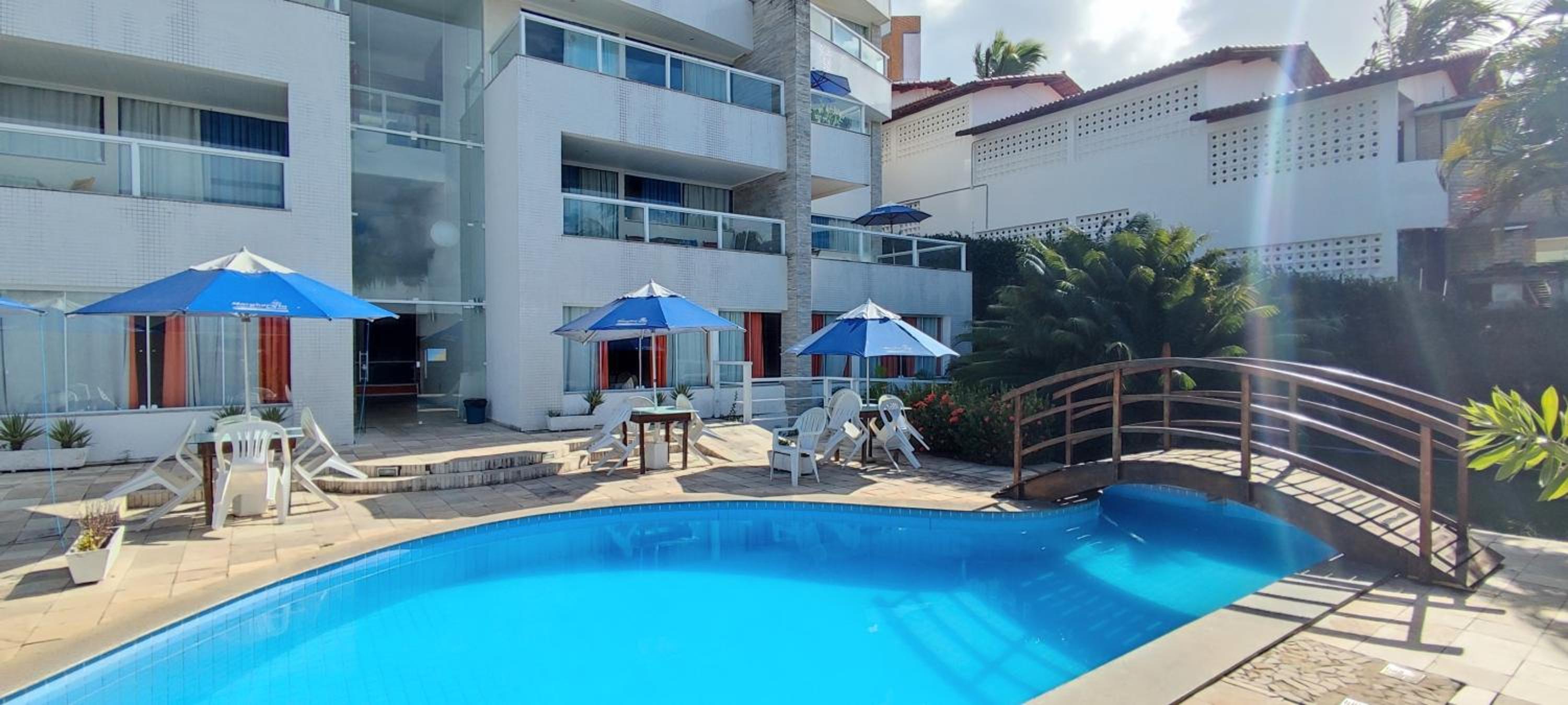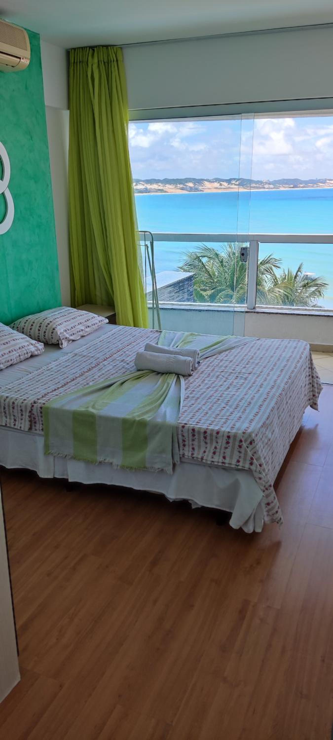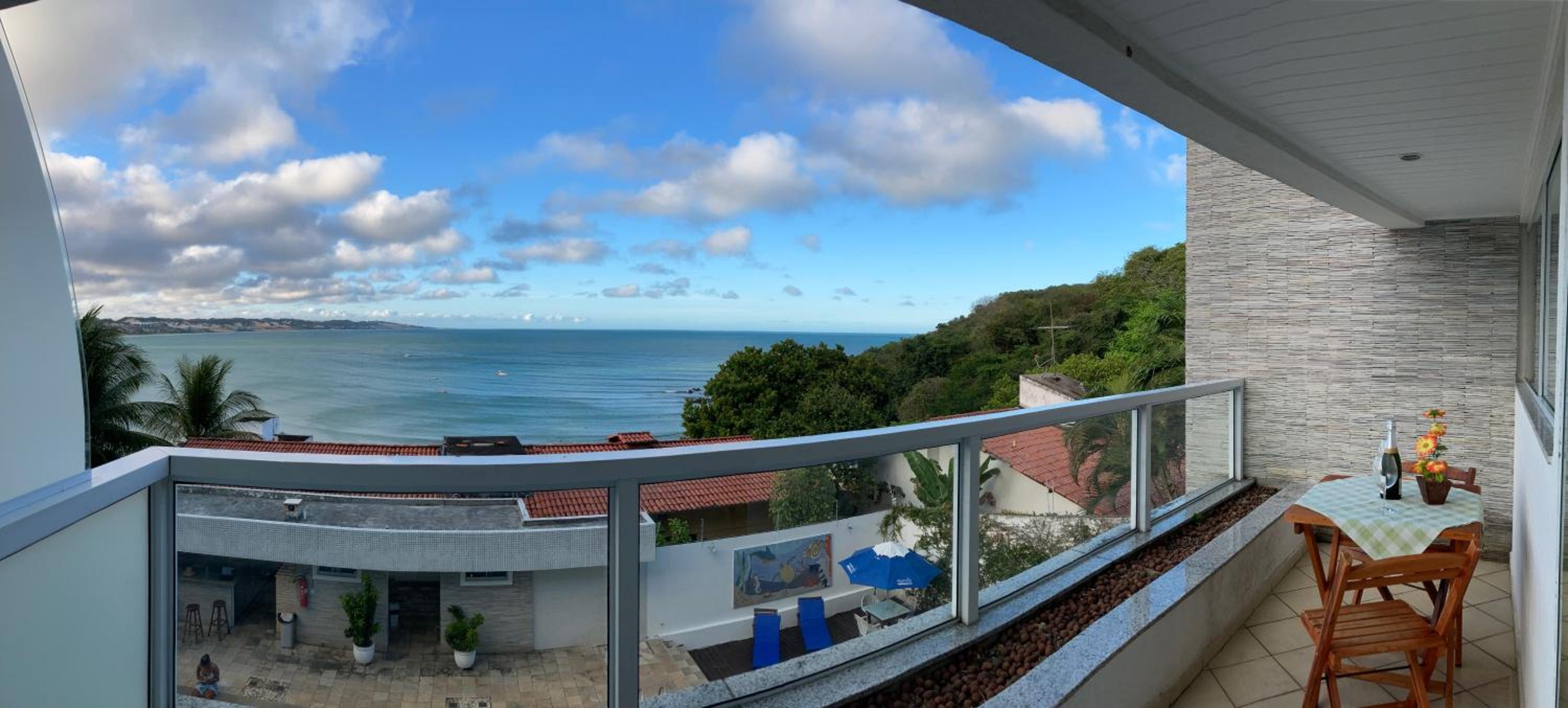 Dos cômodos, sacada de frente pro mar e para a piscina, limpeza, silêncio, muita tranquilidade.