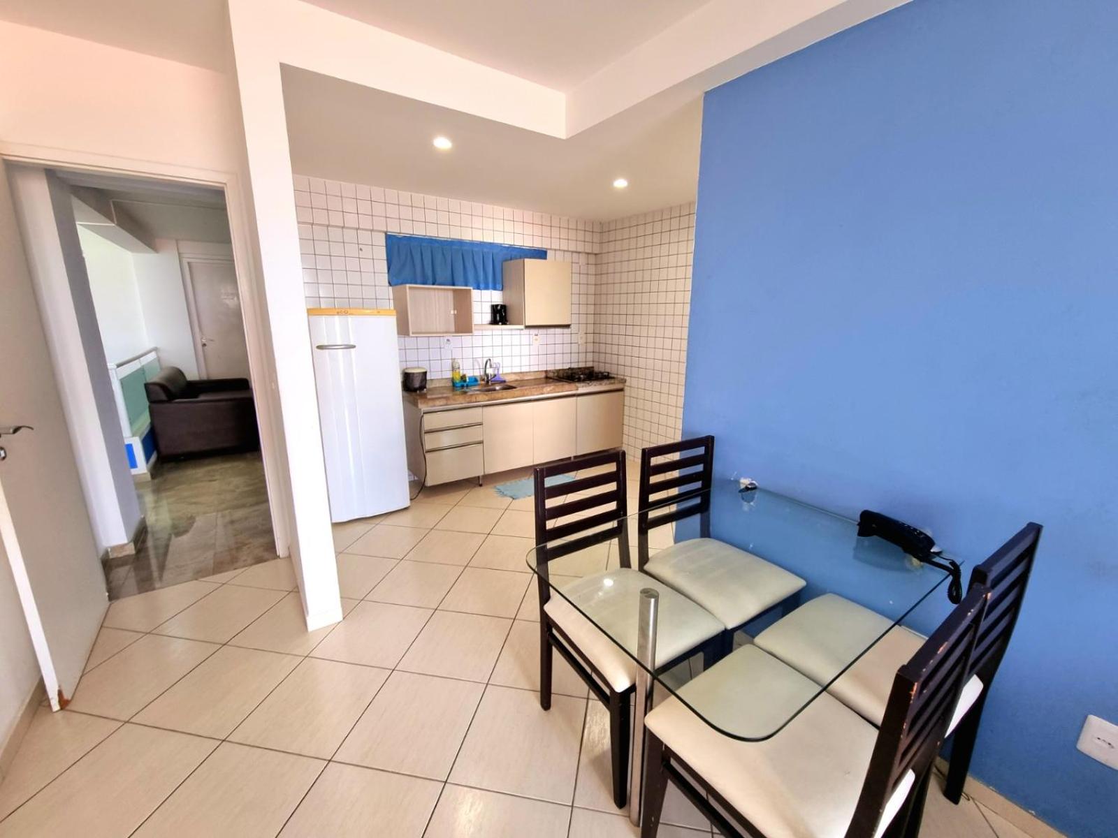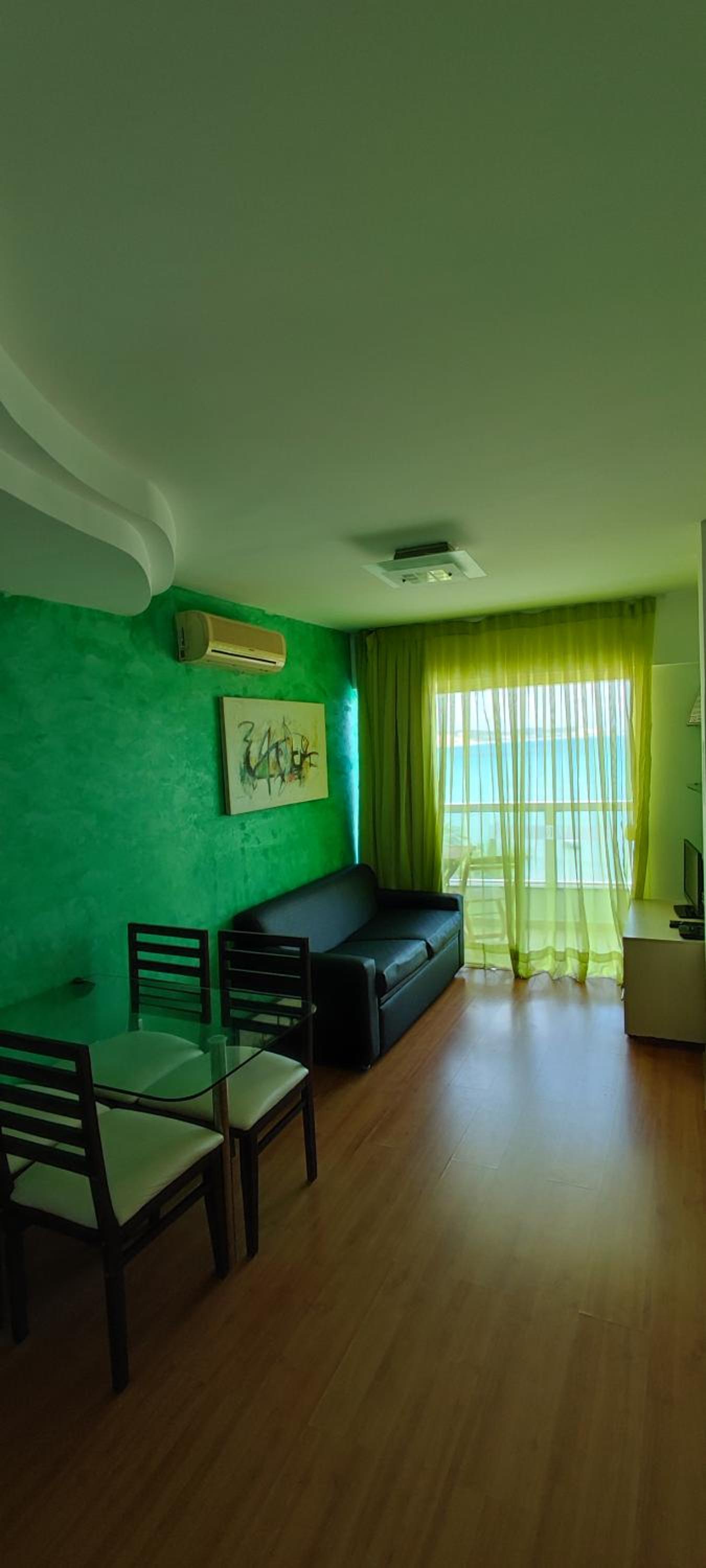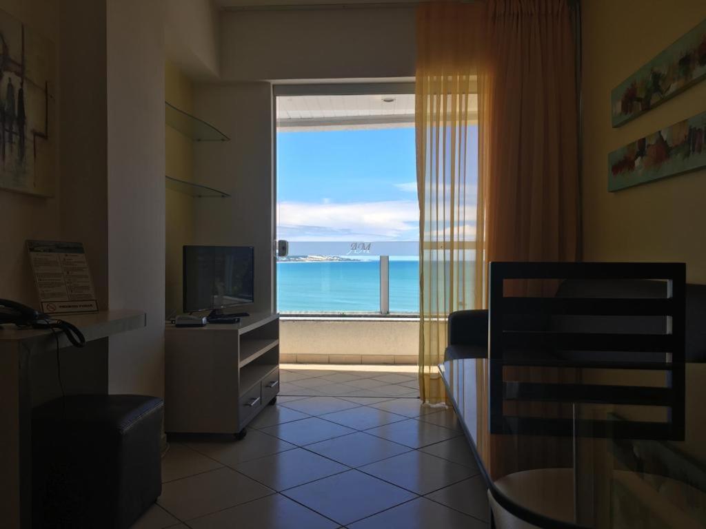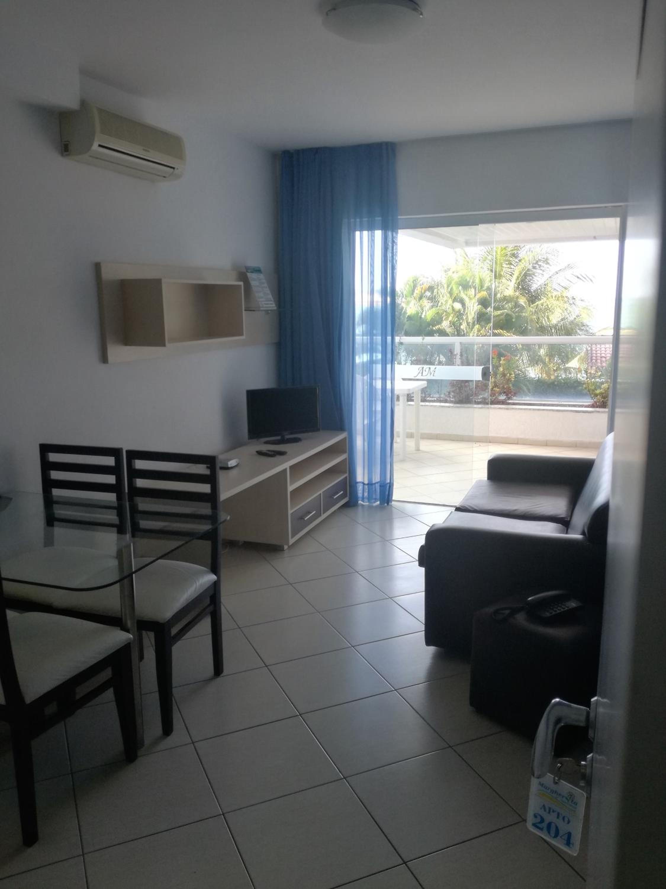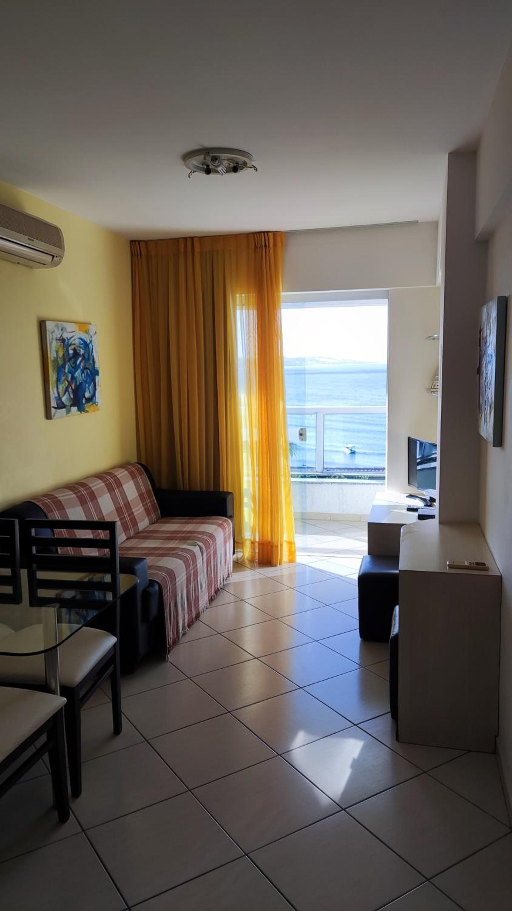 Dos cômodos, sacada de frente pro mar e para a piscina, limpeza, silêncio, muita tranquilidade.
