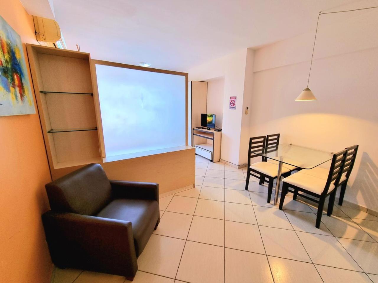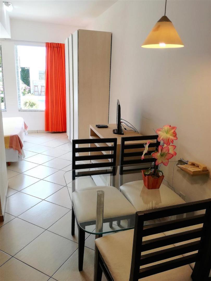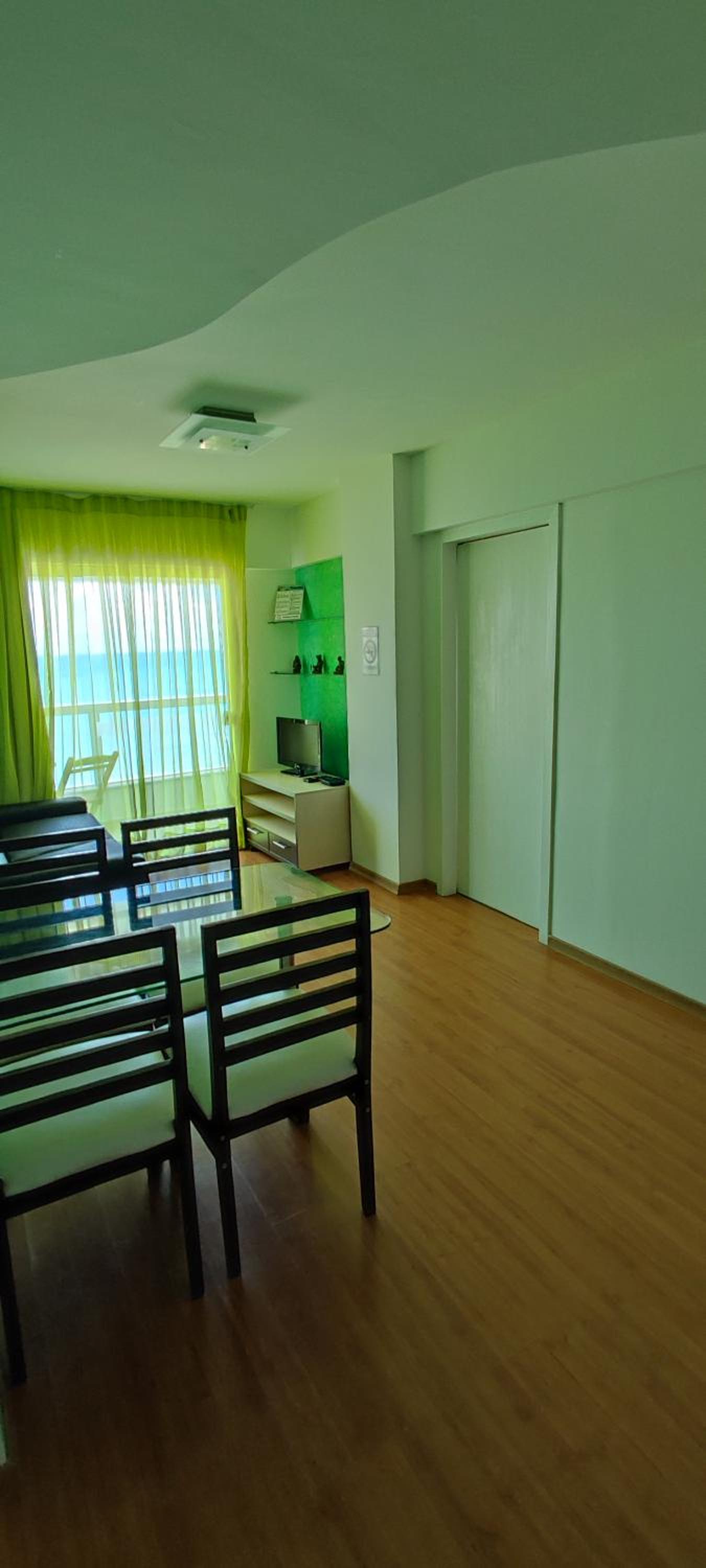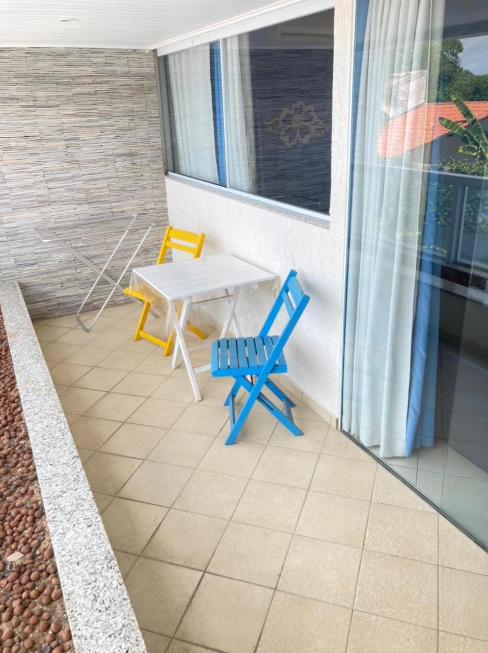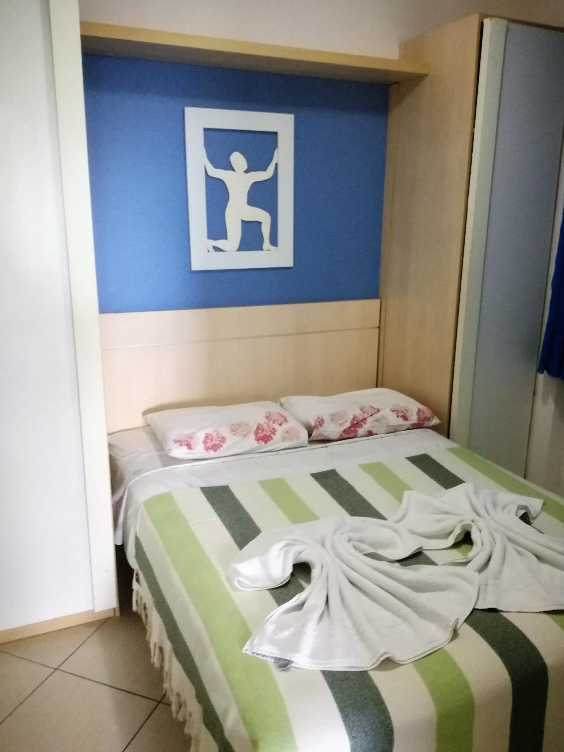 Dos cômodos, sacada de frente pro mar e para a piscina, limpeza, silêncio, muita tranquilidade.
