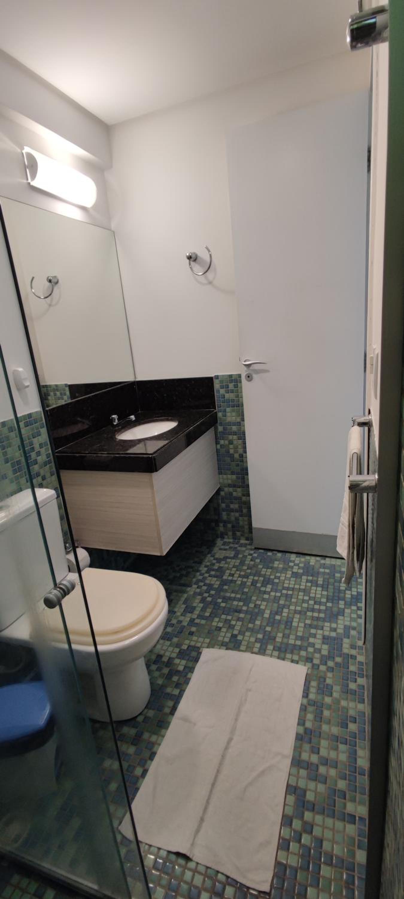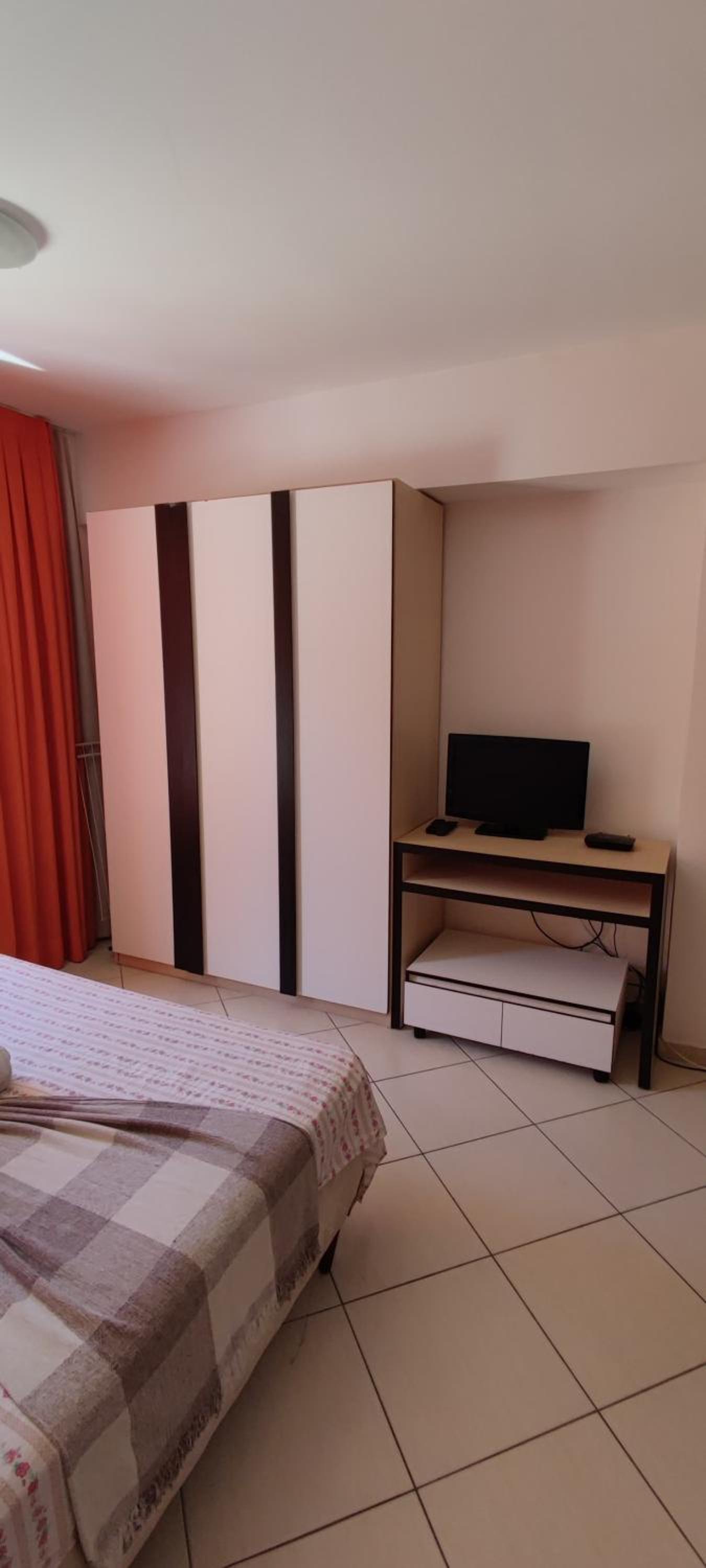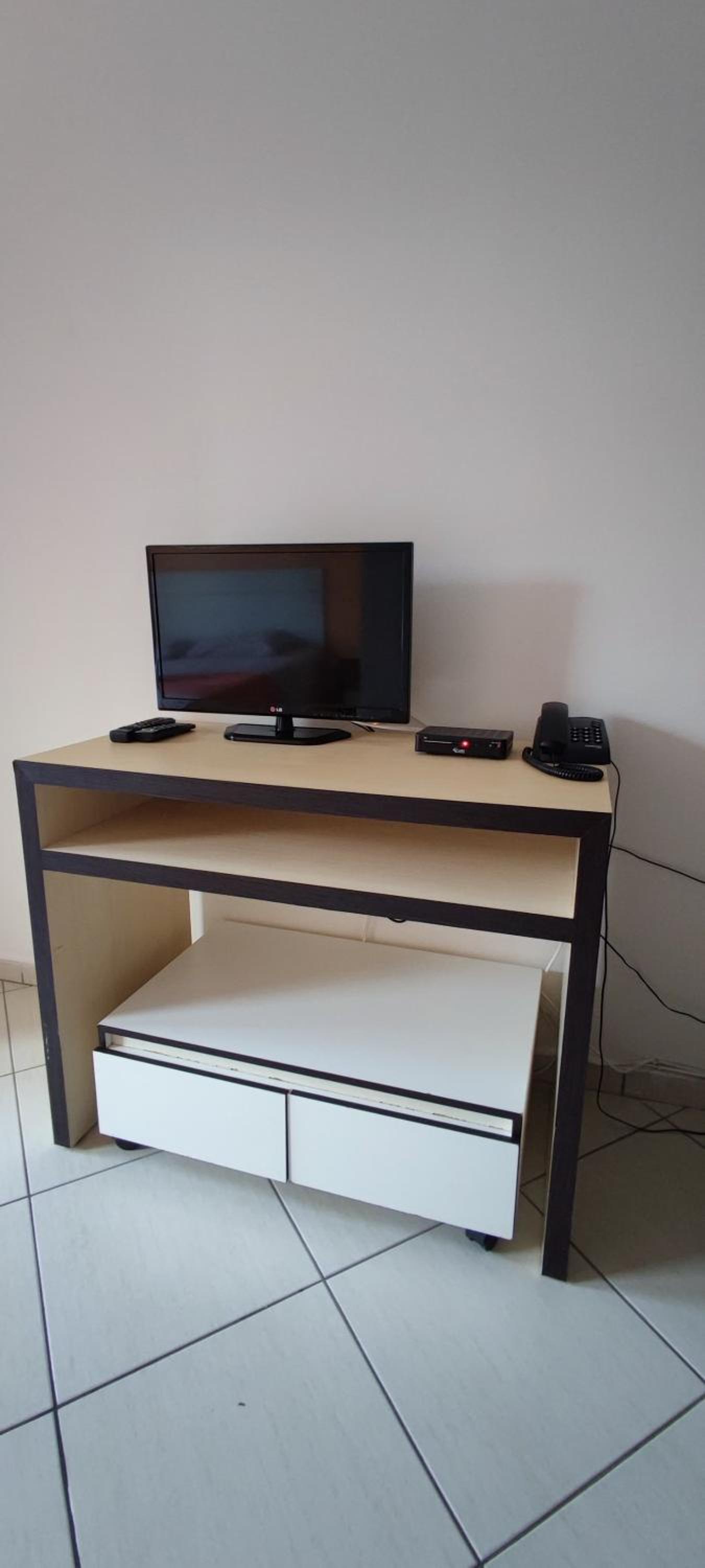 A manta para dormir muito fina e pequena, um edredon casal seria mais viável já que o apart era pra casal.
