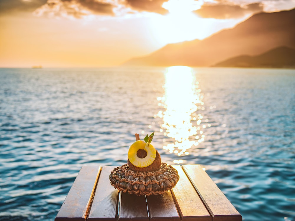 Do note that the hotel is located a bit outside the town center. We recommend renting a scooter to easily explore Kaş and the surroundings. Alternatively, a taxi to or from the center costs around 350 lira per ride.