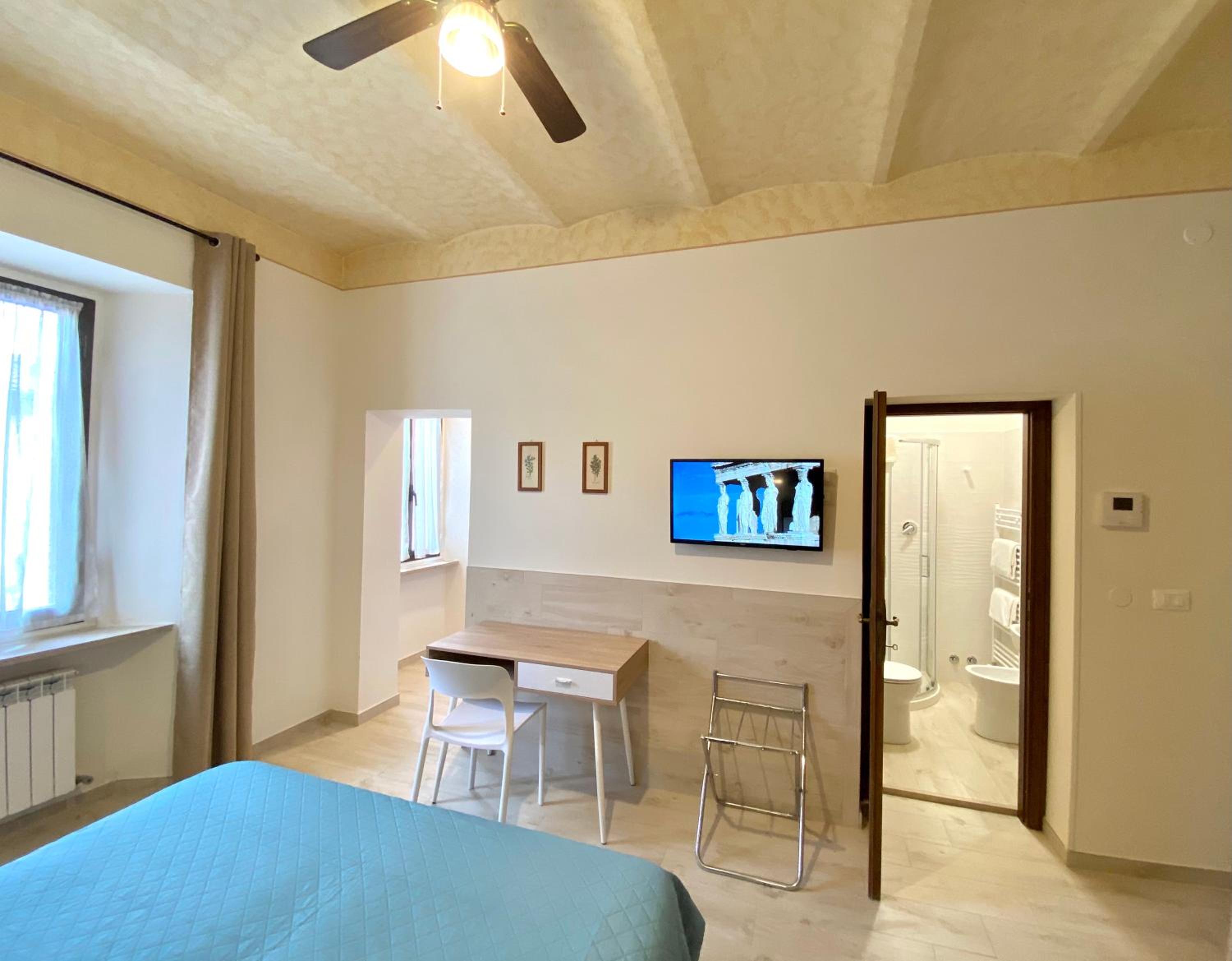 En-suite Rooms and Apartments: Enjoy the comfort of our simply decorated accommodations with terracotta flooring. Studios come with a fully equipped kitchenette and some boast a terrace.