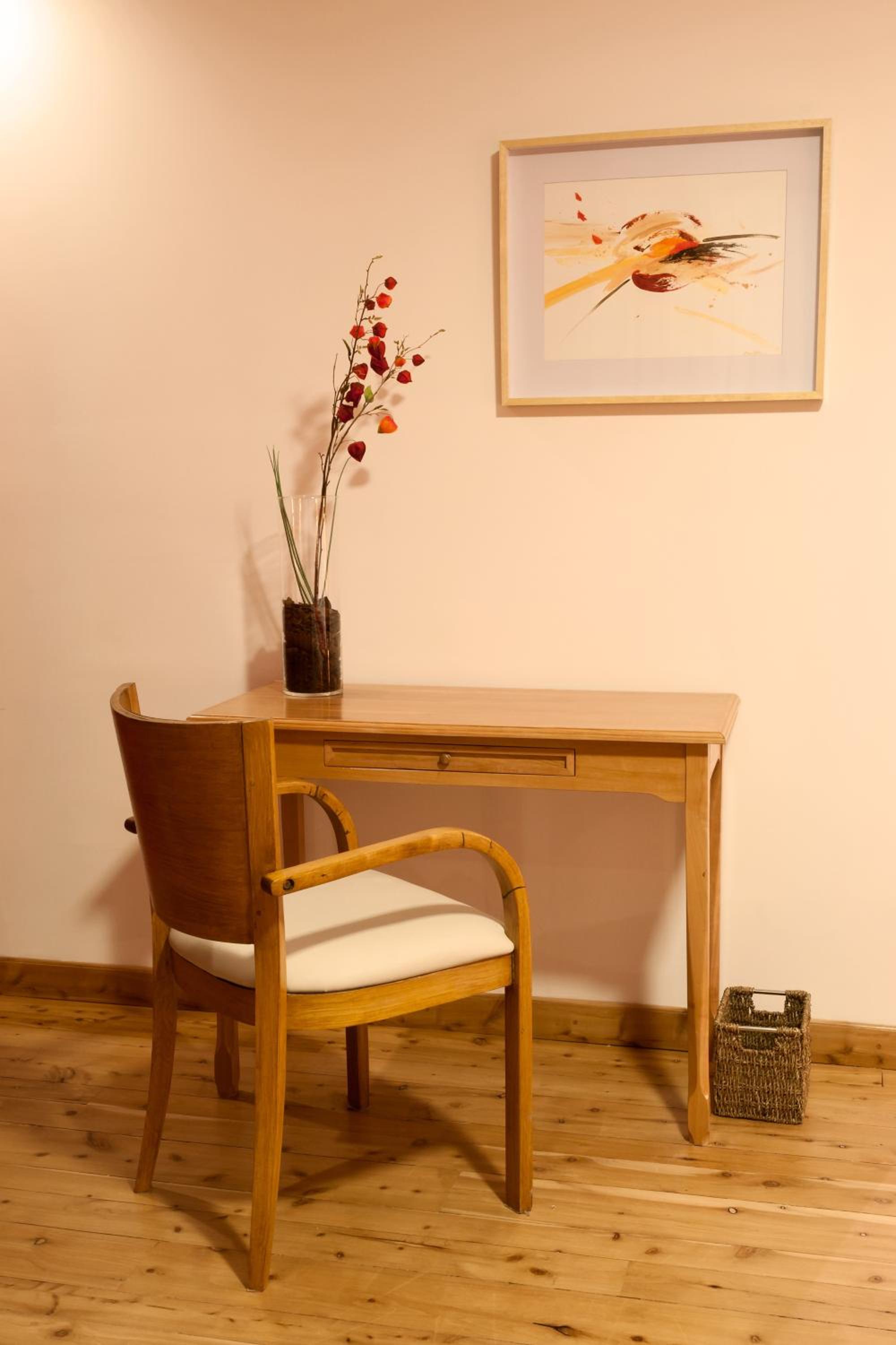 Experience the charm of alpine style rooms with wood furnishings, heating, and some featuring elegant dark wood furniture and flat-screen TVs for a cozy stay.