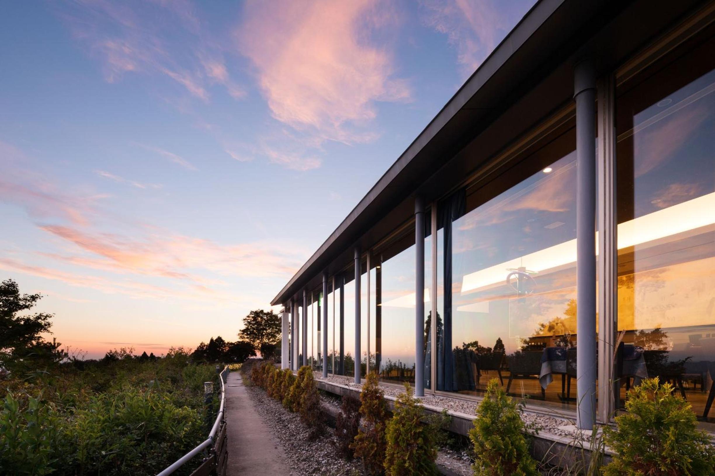 朝にはカーテンを開けたら、一面の雲海が広がっていて、感動しました。高台に有るので、朝も夜も景色は最高でした。ソフトドリンク ワイン🍷飲み放題サービス 最高です💕