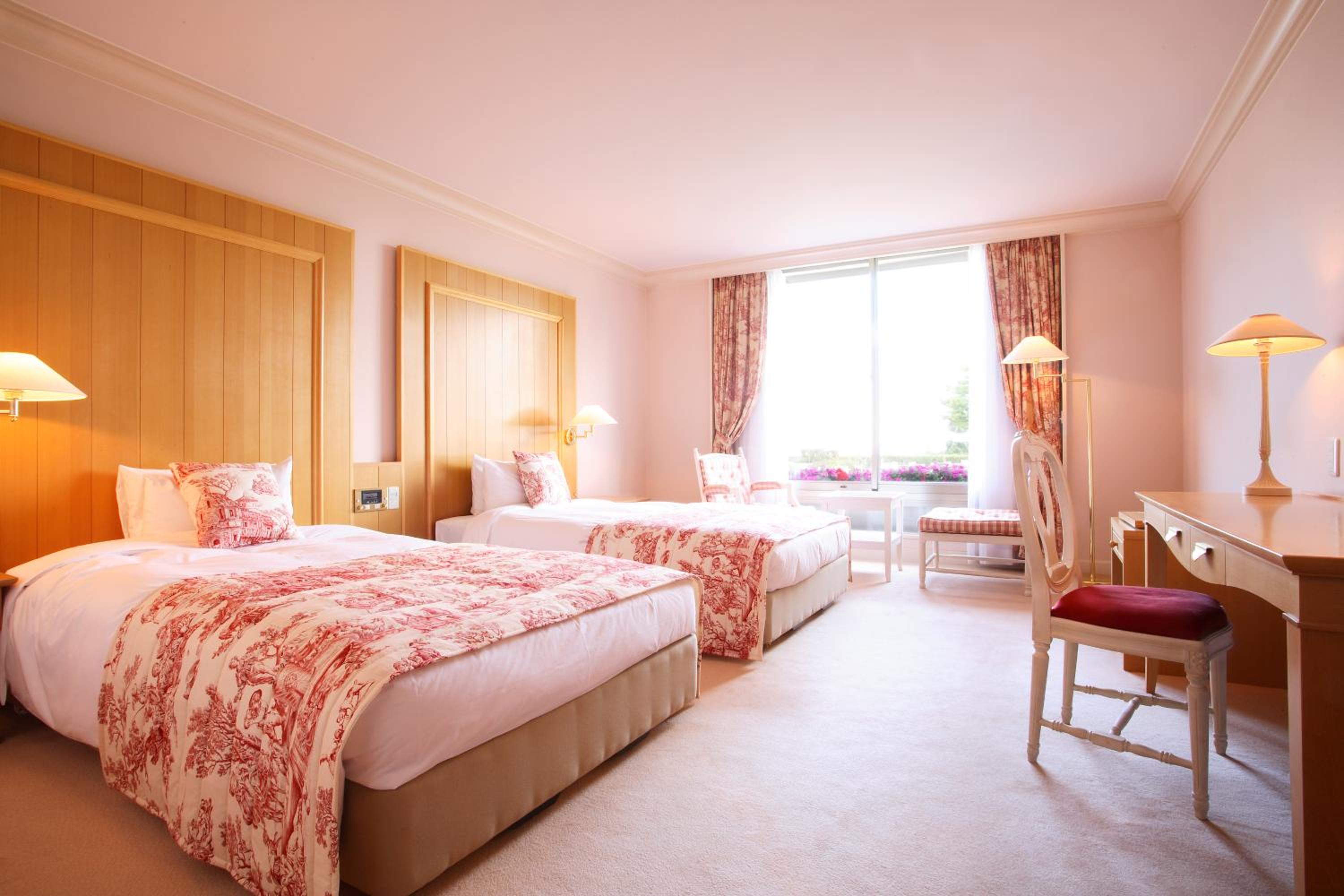 L'Hotel de Hiei in Kyoto offers air-conditioned rooms with modern amenities like a flat-screen TV, safety deposit box, and private bathroom. The rooms are elegantly furnished to provide a comfortable stay for guests.