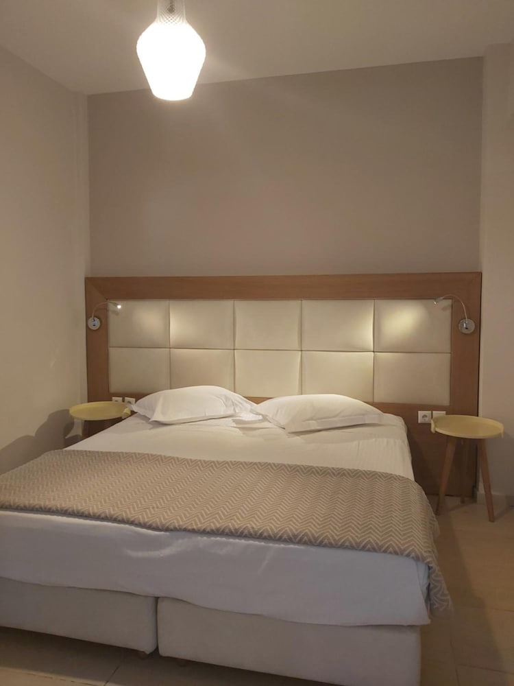 Spectacular view of the New Port and the sea. Perfect for viewing the sunsets over the water with islands in the distance. Clean, fresh, airy, quiet, well maintained hotel apartment. Friendly service. Ten minute walk to SeaBus or public bus and a quick ride to the Old Port or downtown Mykonos. The hotel is on a hill. It is a bit of a climb up from the public bus or Sea Bus after spending the day in town. You can avoid the climb by taking a taxi back.