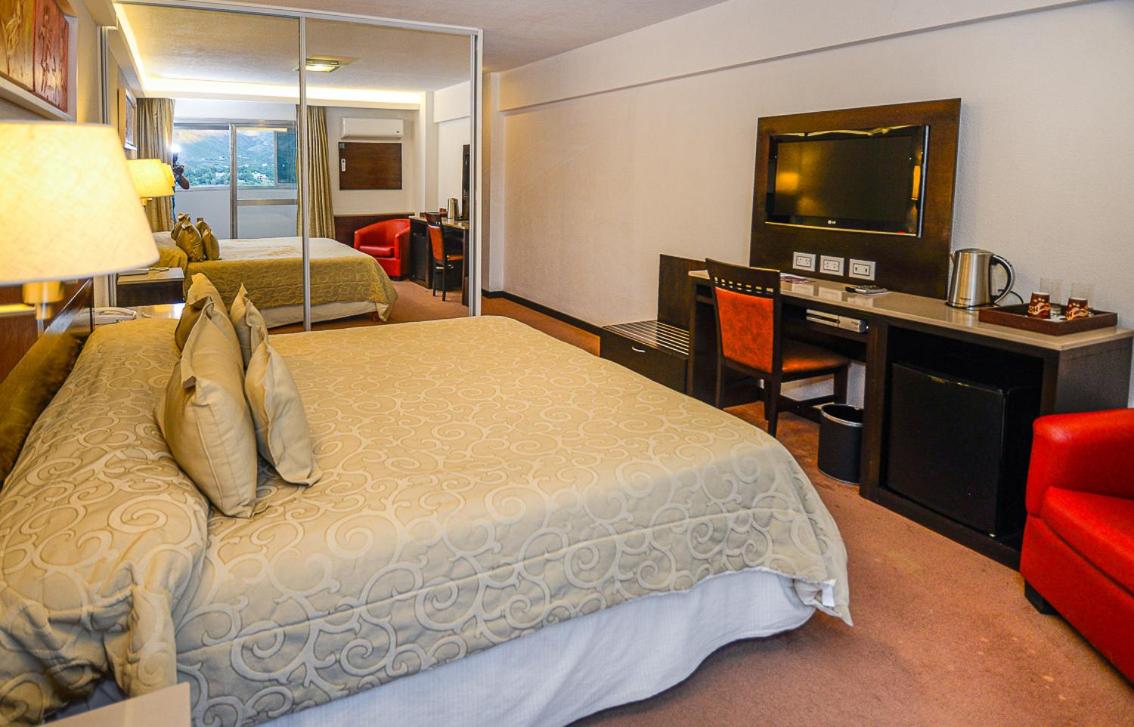 Aspecto anticuado. Se nota que ya pasó la época de oro del hotel. Piscina cierra temprano. Wifi bastante inestable. Habitación tiene un balcón con ventanas, pero el compresor del aire acondicionado está en el balcón… por lo cual es ruidoso y sumamente caluroso.