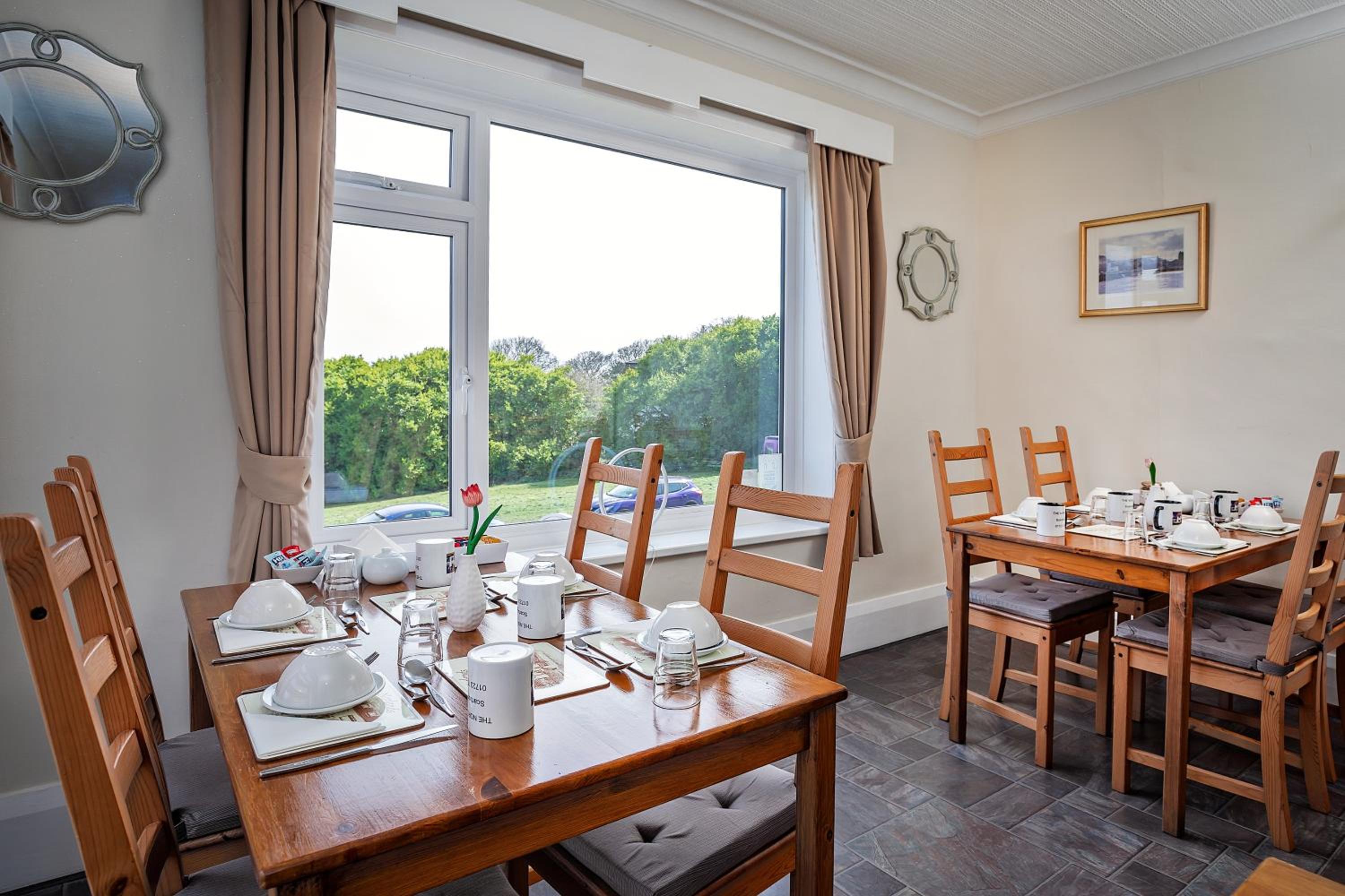 Good quality products, plenty of choice, full english, continental, fresh produce. Beautiful dining room with sea view.